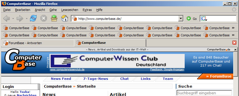 Jeder von Euch kennt sicherlich die Leiste wo man die Lesezeichen reinpacken kann. Leider reicht mir der vorhandene Platz nicht ganz aus und ich hätte gerne eine zweite, damit ich alle Wichtigen auf einen Blick habe und mich nich noch extra durch Ordner klicken muss.