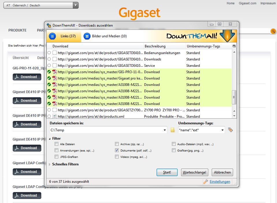 Ich lege gerade eine Dokumentensammlung an, hierfür muss ich viele PDF's aus dem Internet herunteladen.