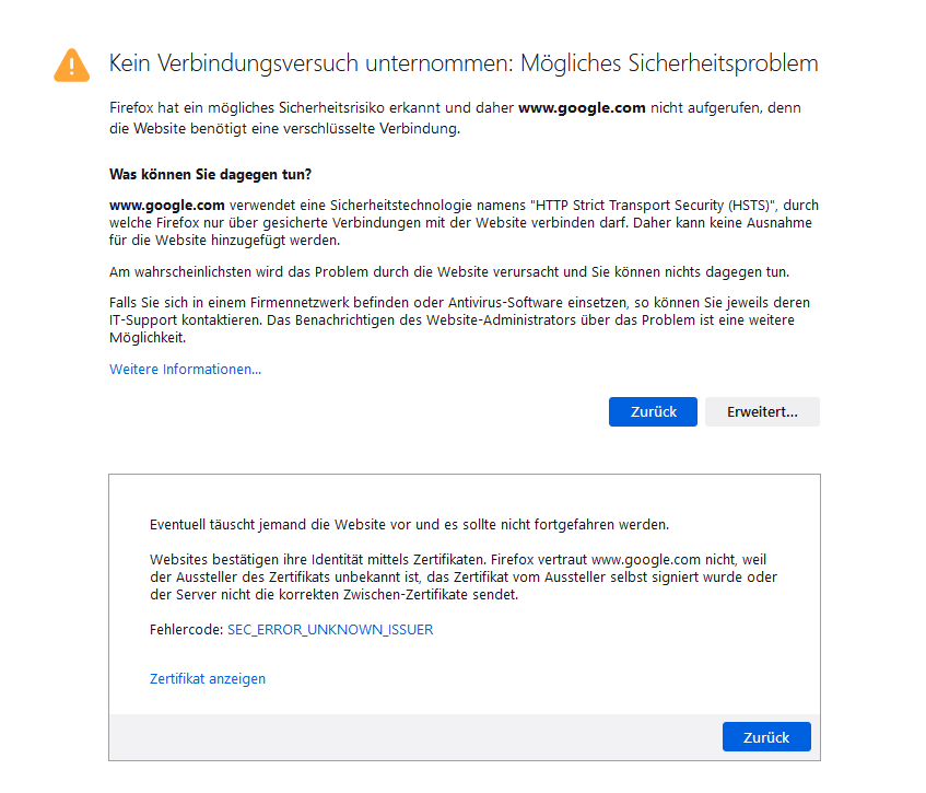 Ich habe mir einen Laptop zugelegt. Wenn ich in Firefox eine Seite aufrufen will , kommt die Meldung, dass ein Sicherheitsrisiko besteht. Dann kann man sich ein Zertifikat anzeigen lassen.