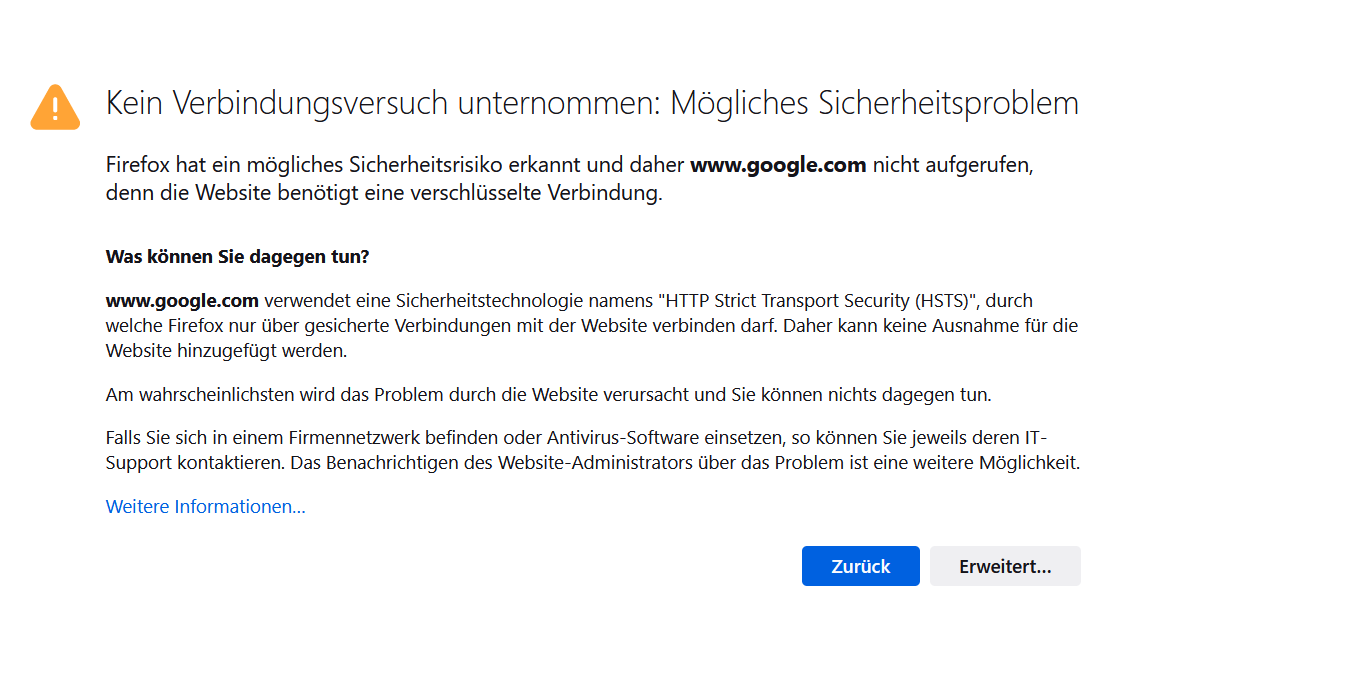 Einen Button, dass ich das Risiko kenne und weitergeleitet werden möchte, gibt es nicht.