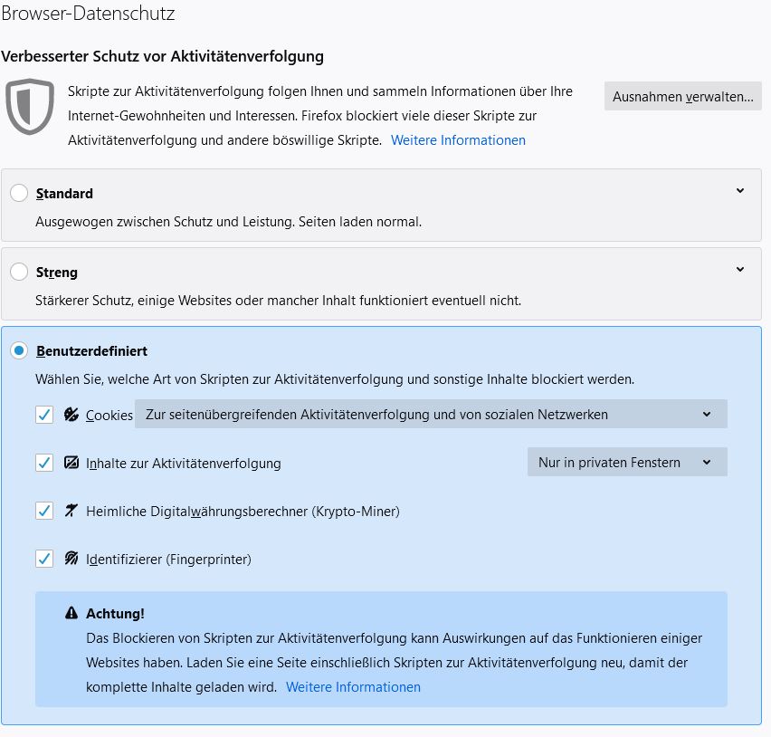 ich habe schon etwas länger Probleme mit Firefox. Unter Einstellungen ist alles korrekt eingestellt.