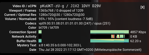 Auch das vorherige Video vom gleichen Channel startet nicht, aber das habe ich gesehen als es released wurde. Das Video davor geht dann aber. Schaut man sich dann die technischen Infos an, ist folgendes auffaellig: