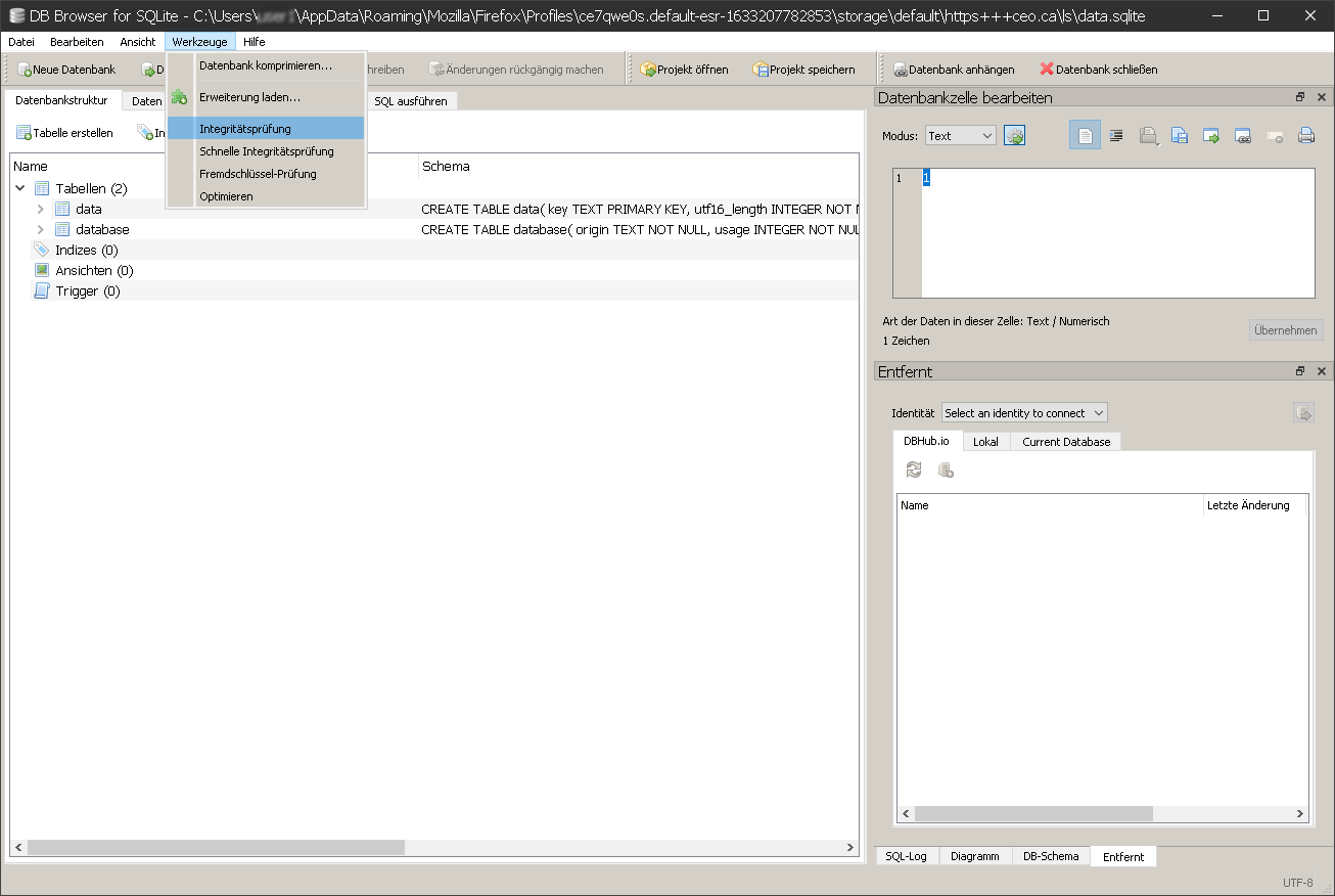 die places.sqlite-Datei meines Firefox-Browsers ist defekt. Das äußert sich derart, dass sie manchmal "corrupt" ist, was sich schnell beheben lässt, indem die Endung umbenannt wird, in erster Linie aber immer wieder aufhört, die Chronik des Browsers zu speichern.