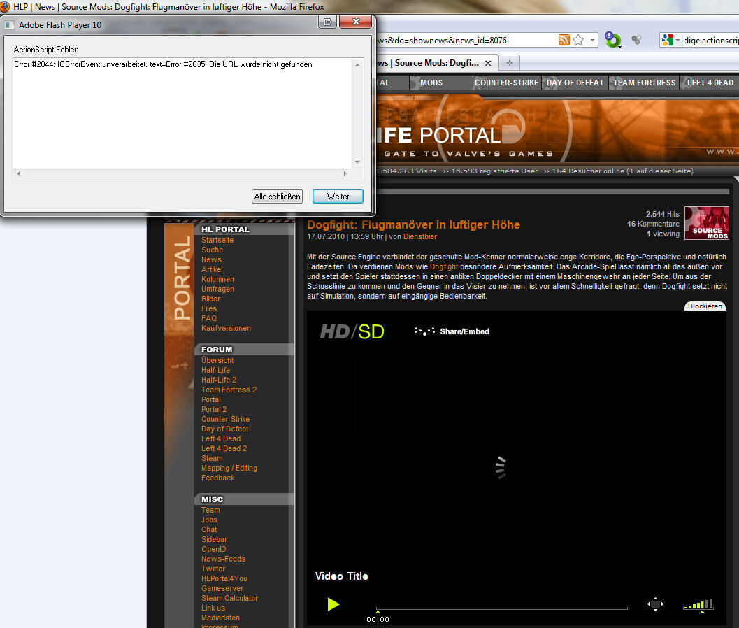 ich hab folgendes Problem, auf vielen Seiten die Flash nutzen kommt Fenster wo drine einige ActionScript Fehler aufgeführt werden. Daraufhin friert FF ein und ich kann nichts mehr tun, da hilft nur Taskmanager. (kann Weiter/Schließen) nicht anklicken.