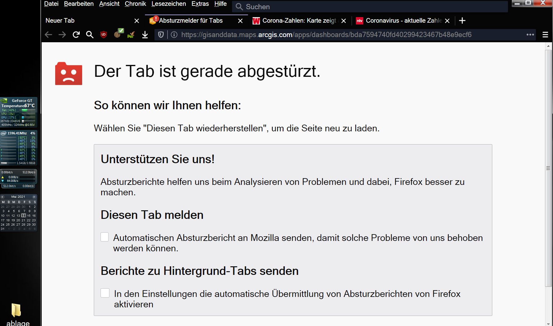Auf dieser Seite URL hier stützt ständig und permanent hier der Firefox ab unter Windows,