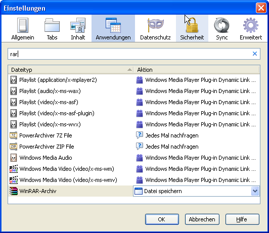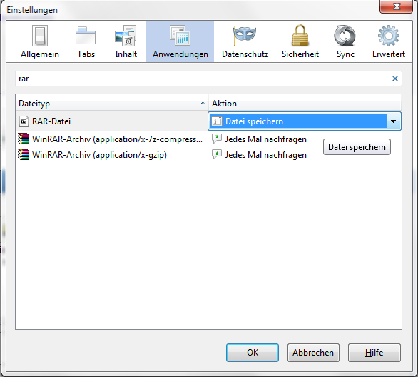 Wie veranlasse ich Firefox dazu, .rar Dateien immer direkt ohne weitere Nachfrage zu speichern?