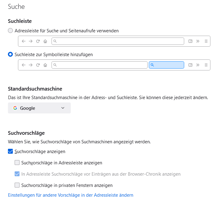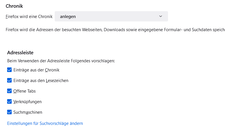 ich schlage mich seit einer Weile mit unerwünschten Vorschläge in der Adressleiste des Firefox herum (aktuelle Version).