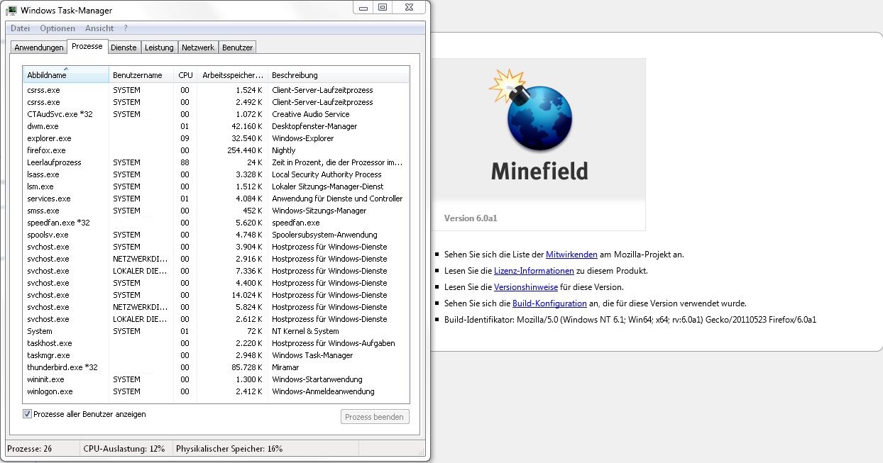 Es reicht das Firefox läuft! Ich muss nichtmal surfen und Firefox bläht sich innerhalb von ca 30min-1h auf ca 2-3GB auf (8GB verbaut, Win7 64bit). Dabei wird er tierisch lahm und schmiert irgendwann ab. Ich hatte schon testweise alle Addons deaktiviert ohne besserung. Ich vermute atm das es an einem Virus o.Ä. liegt.