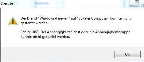 Und wenn ich den Dienst dann manuell starten möchte, kommt diese Meldung: