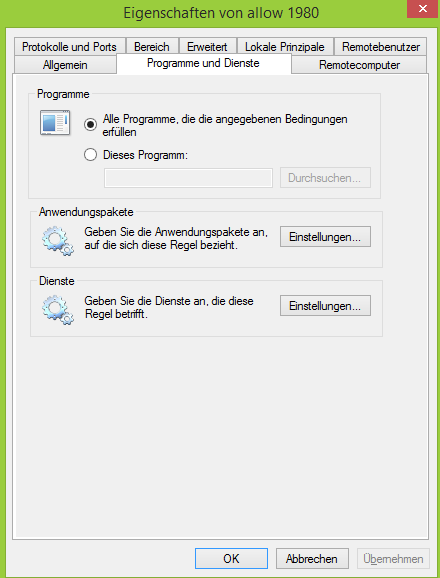 Firewalleinstellungen: Spiel öffnet alle Ports