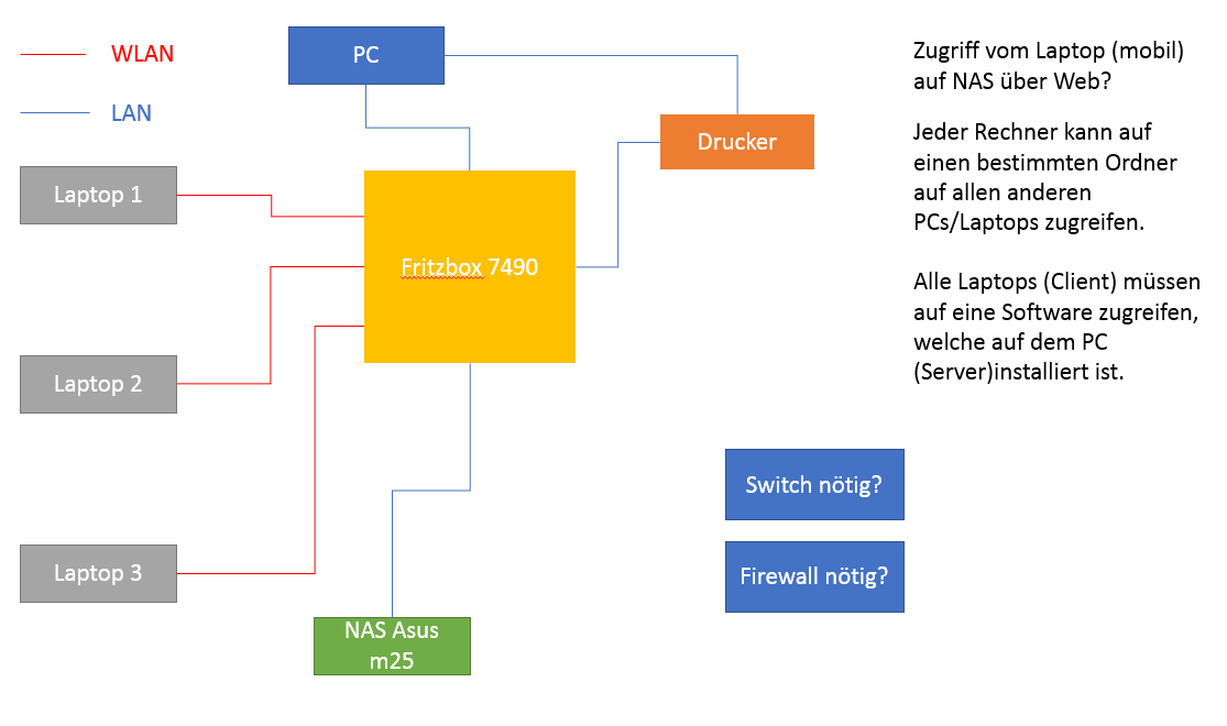 Eine der wichtigsten Fragen wäre für mich, der Du ja anscheinend zumindest nicht zu viel Erfahrung zu haben scheinst, um es vorsichtig zu umschreiben, was im schlimmsten Fall passieren könnte, wenn das von Dir skizzierte und vielleicht auch implementierte Netzwerk auf einmal nicht mehr das tut, was es soll. Bist Du dann derjenige, der die Arschkarte gezogen hat und vollumfänglich dafür verantwortlich gemacht wird? Dann würde ich dringendst doch zur Hinzuziehung eines professionellen Beraters tendieren ... Jm2c!