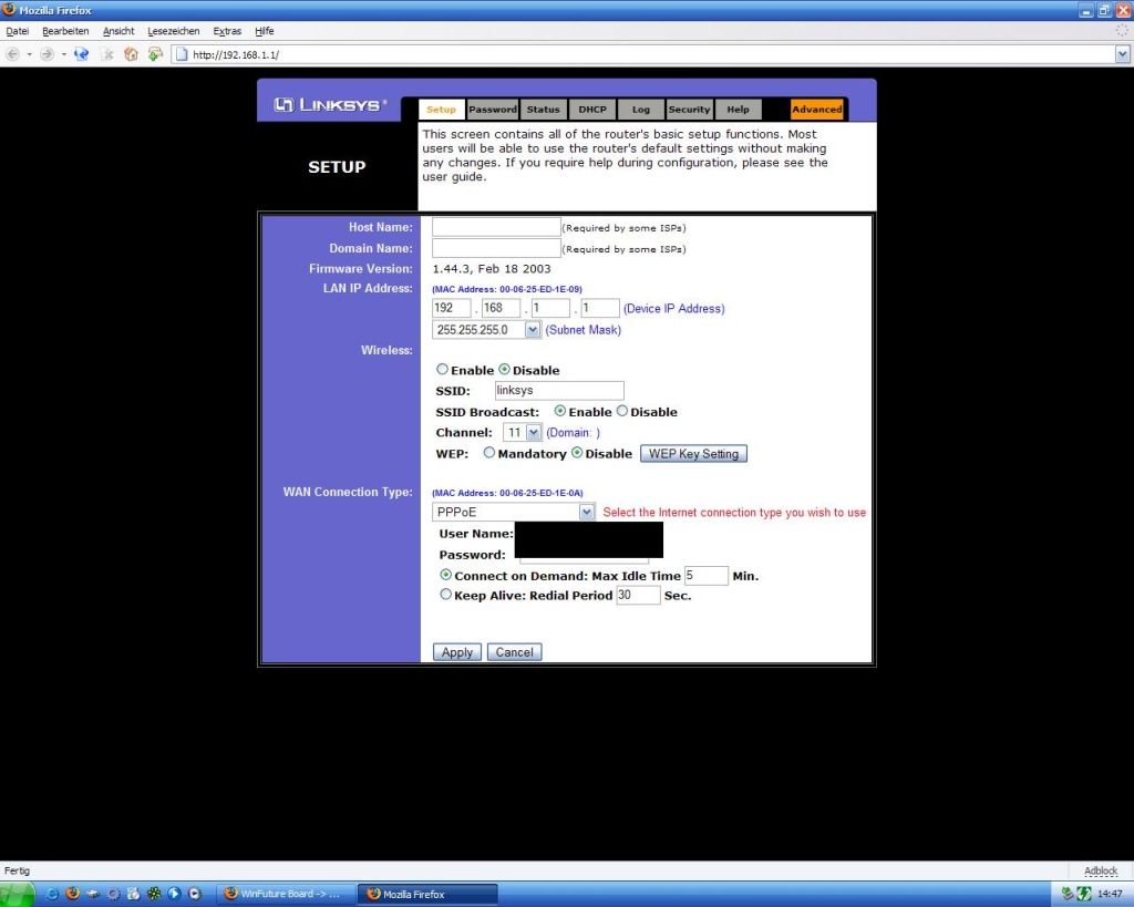 Nach mehreren erfolglosen Versuchen ist es mir nicht geglückt WPA mit dem Linksys Router einzurichten. habe das schon bei mehreren anderen Router schnell und erfolgreich geschafft. nur der linksys will nicht so recht. Kann mir jemand helfen? Oder sagen wo ich Hilfe bekommen kann? Danke!