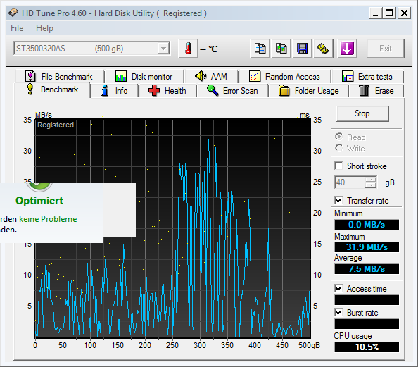 Hab die gleich mal mit HDTunePro checken lassen, das Ergebnis is folgendes: