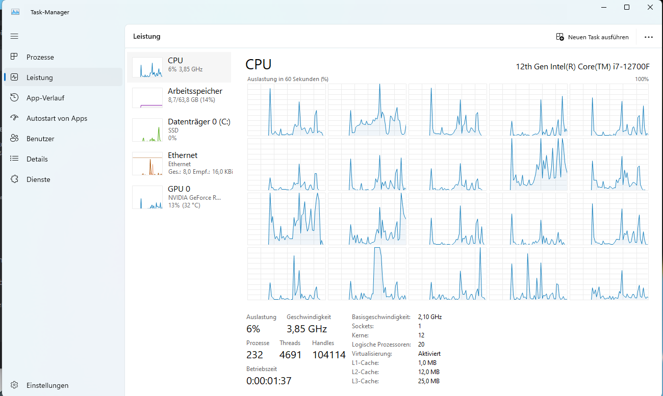 graph war auf gesamtauslastung habs nun geändert , aber gut Skudrinka das wusste ich nicht dachte bei 100% cpu geht pc down oder so , danke für eure hilfe