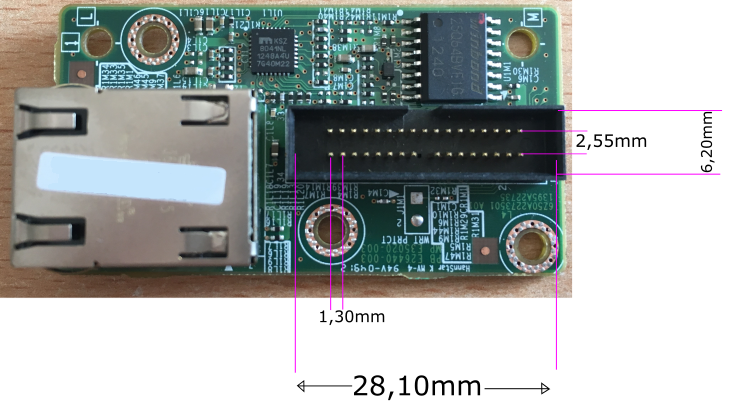 Ich bin auf der Suche nach einem Flachbandkabel für ein Intel Remote Management Modul 3. Das schwierige hieran ist dass es sich scheinbar nicht um einen normalen Stecker handelt. Ich habe versucht die Maße mit der Schieblehre zu nehmen. Ich hoffe mit den Daten kann man etwas anfangen.