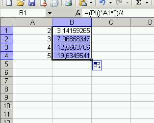 =(PI()*B5^2)/4 und unter B5 verbirgt sich 12mm, jetzt will ich das mit 13,14,15,16 etc mm auchmachen. muss ich dann die formel eingeben und auf die spalten klicken?