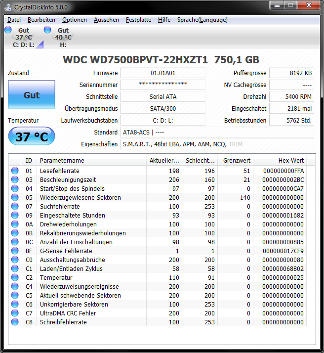 CrystalDiskInfo liefert mir nichts, was nach einem Problem aussieht (zumindest für mich nicht ersichtlich).