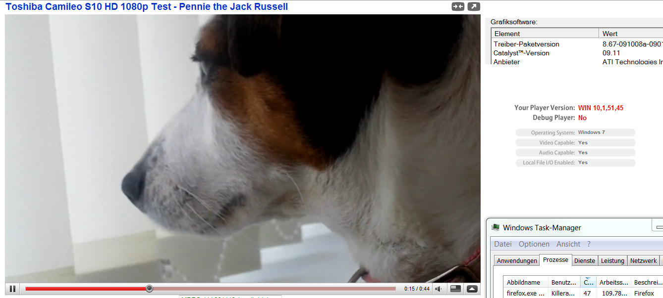 Im Anhang ein Bild mit der Prozessorauslastung (genau so hoch wie mit alter Flash version), GPU-Treiberversion und Flash-Versionsanzeige.