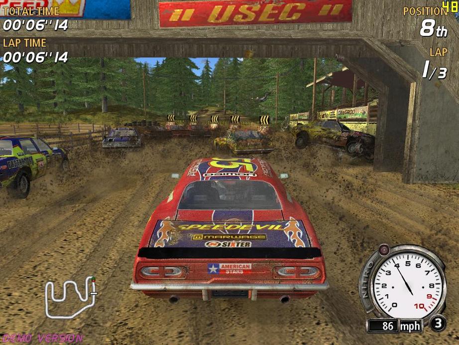 Aber ansonsten sieht das Spiel recht schick aus und macht ordentlich Spass...wobei es genau genommen ja gar nicht so richtig ein Rennspiel ist. Wen interessieren die Zeiten? Ich will kaputtes Blech sehen!
