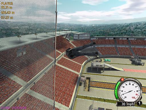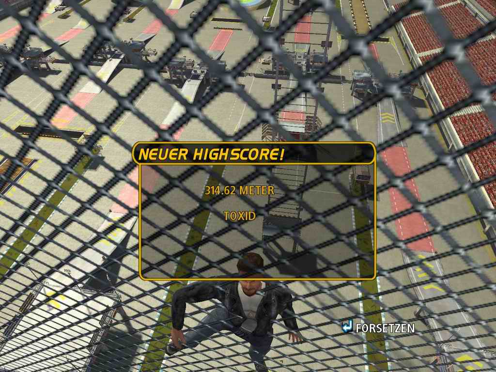 Die Rampe runter und kurz vor dem Huckel zur Sprungschanze kurz Gas weg (damit der Wagen nicht so springt) dann gleich wieder Vollgas, die Sprungschanze rauf. Und nun kommt das wichtigste, hier ist etwas Timing gefragt: Beginnt erst auf der Sprungschanze die Poweranzeige für den Jump zu füllen. Lasst das Auto etwas über die Schanze hinausfliegen und löst dann den Jump aus. Je höher das Auto vorher kommt, desto höher kommt letztendlich auch die Figur.