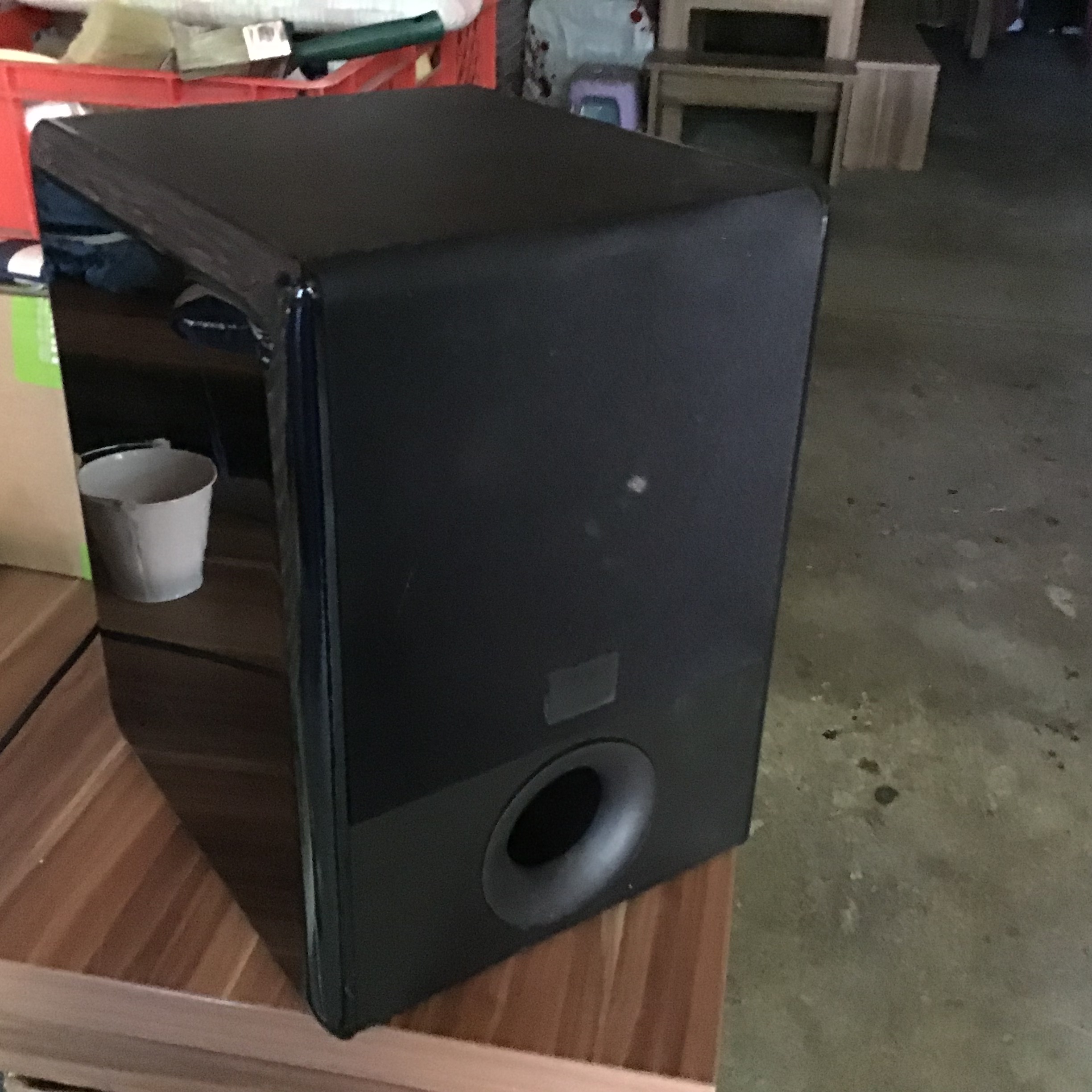 Angelötet an dem Basslautsprecher unten.