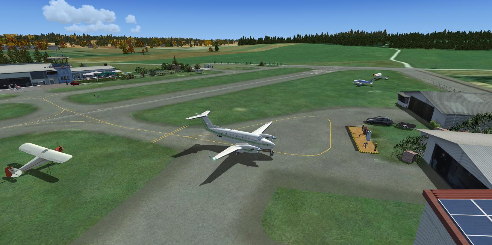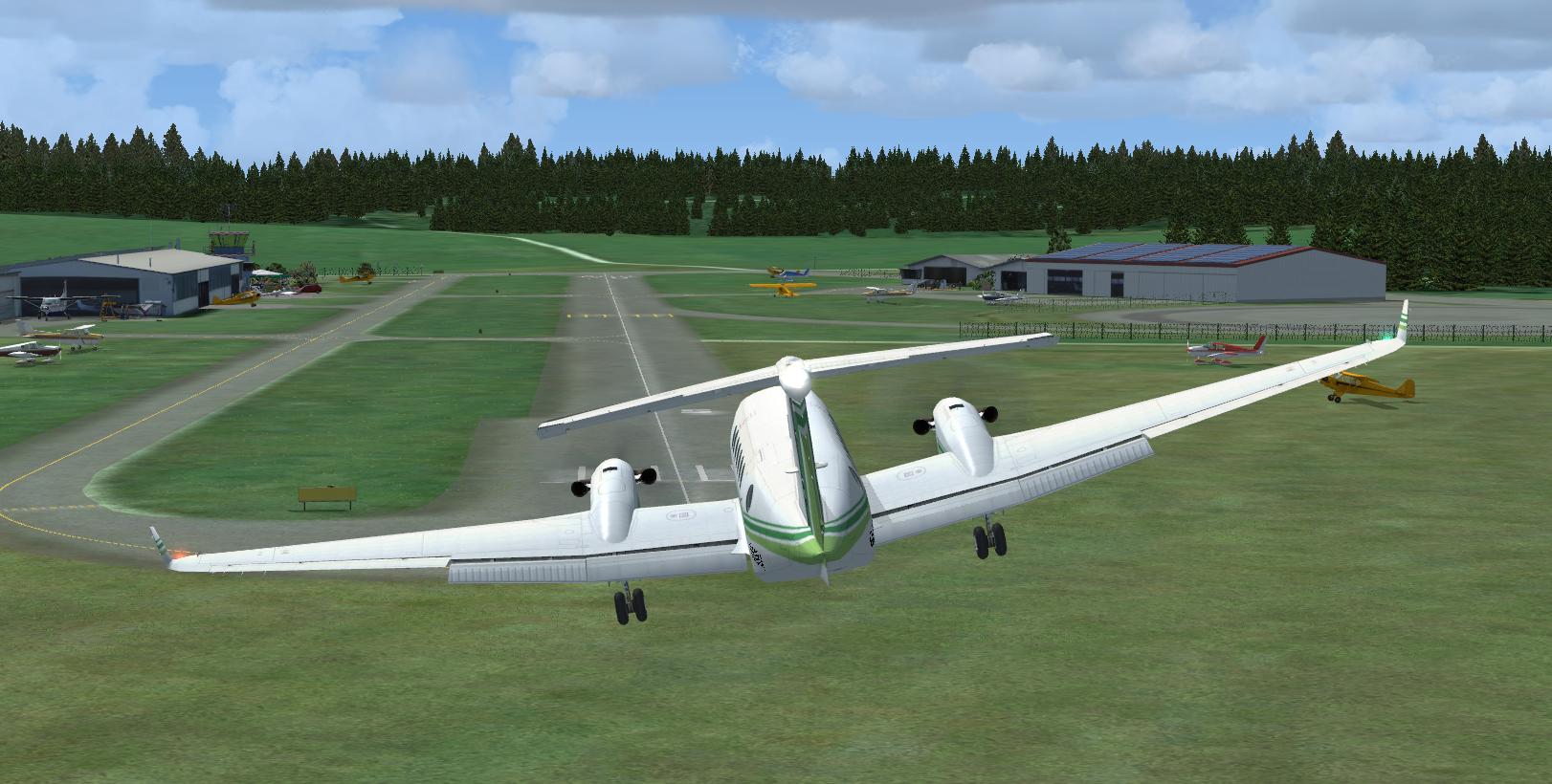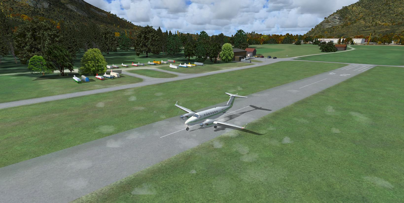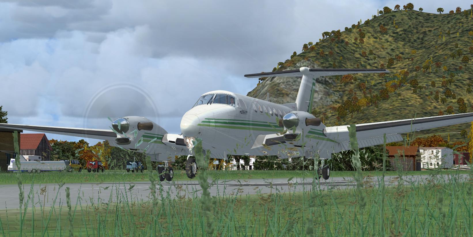 Ein keiner Sportflugplatz lässt grüßen. Mit der King Air 350 wird da richtig eng aber es reicht gerade noch für Start und Landung.