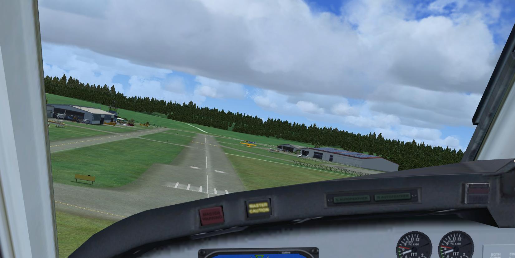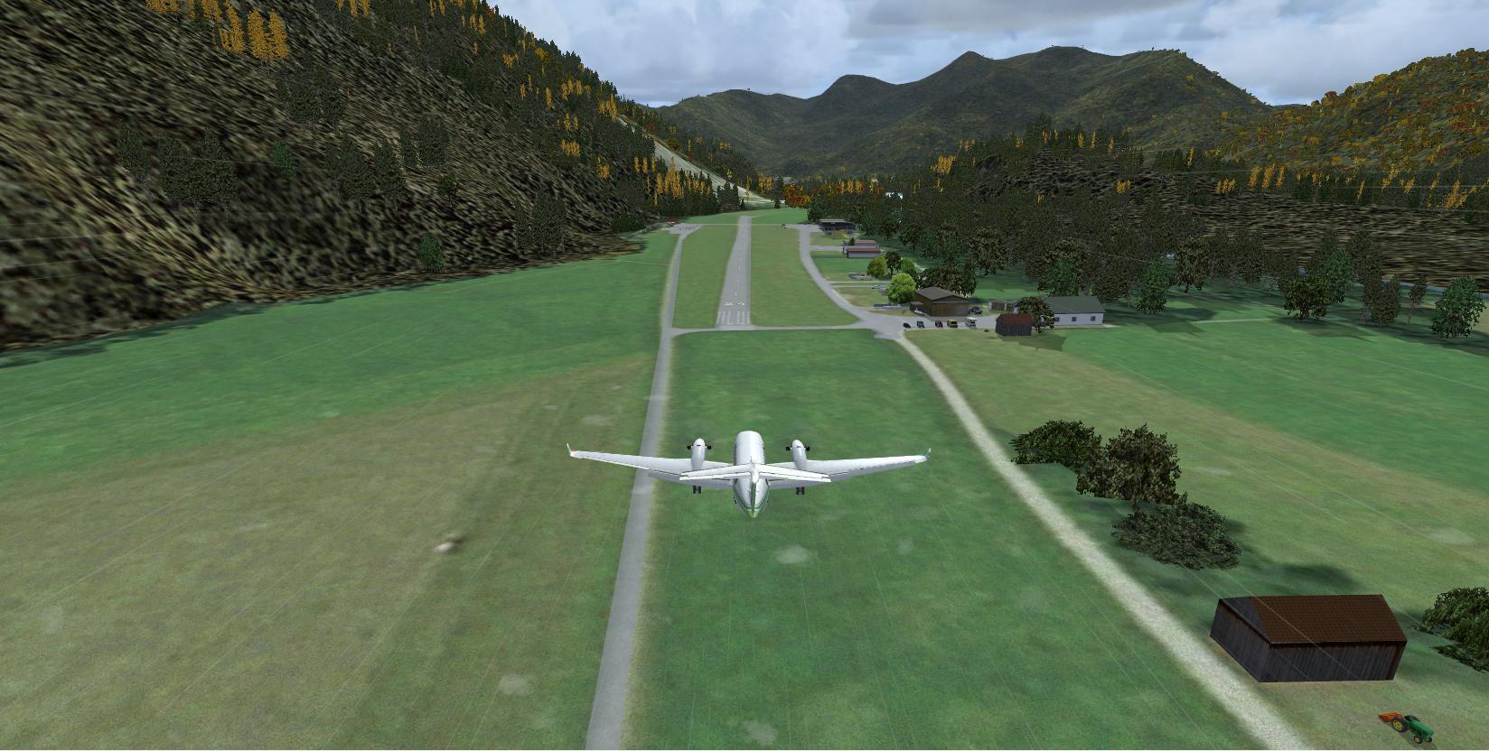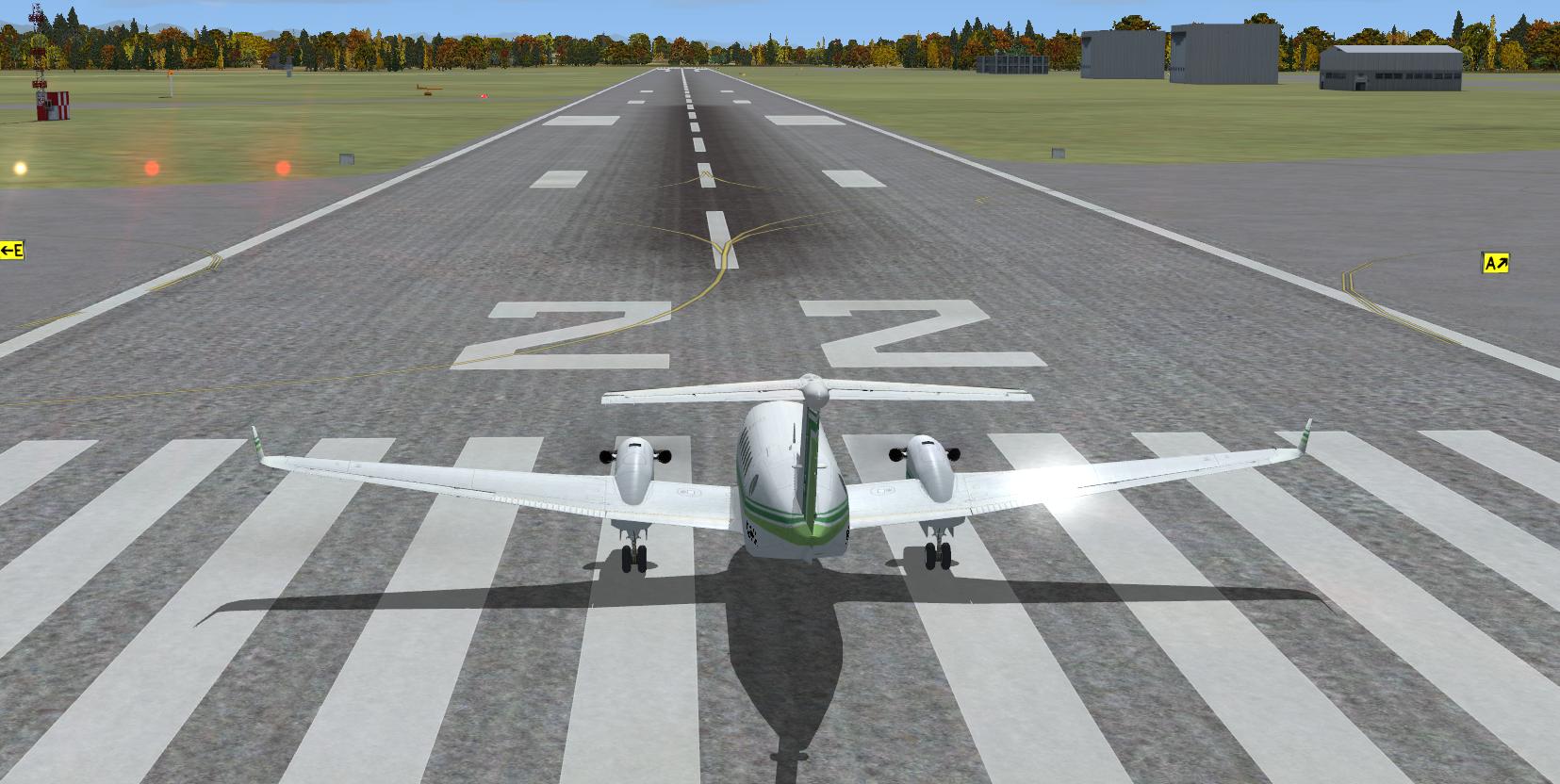 Ein keiner Sportflugplatz lässt grüßen. Mit der King Air 350 wird da richtig eng aber es reicht gerade noch für Start und Landung.