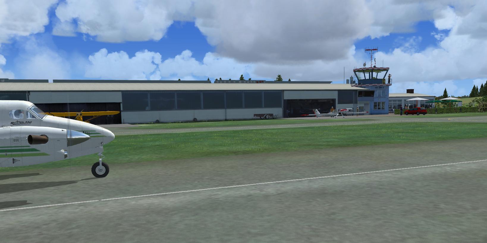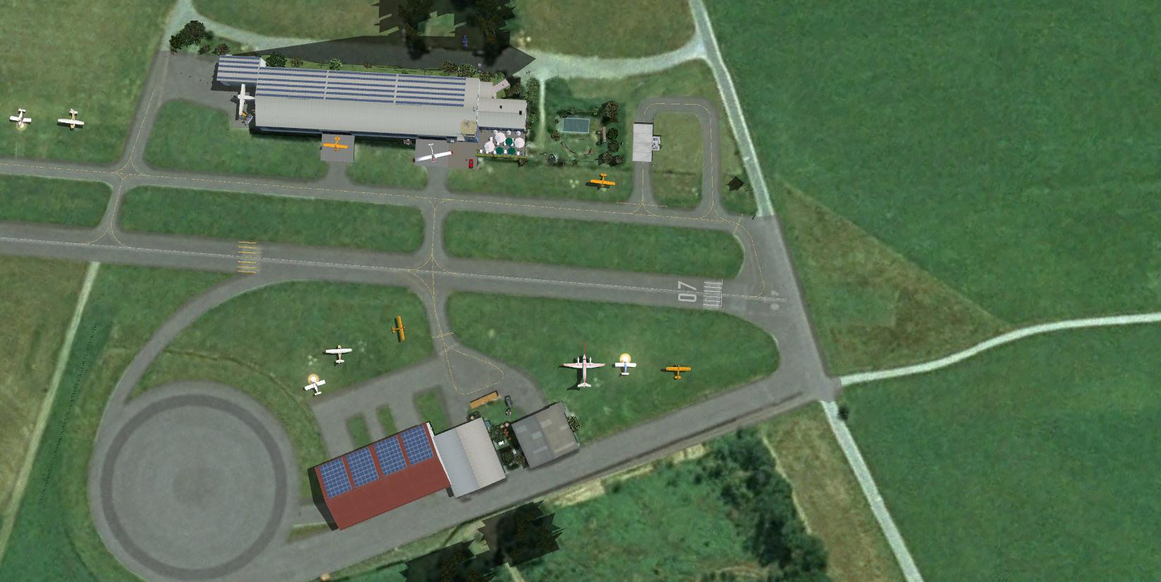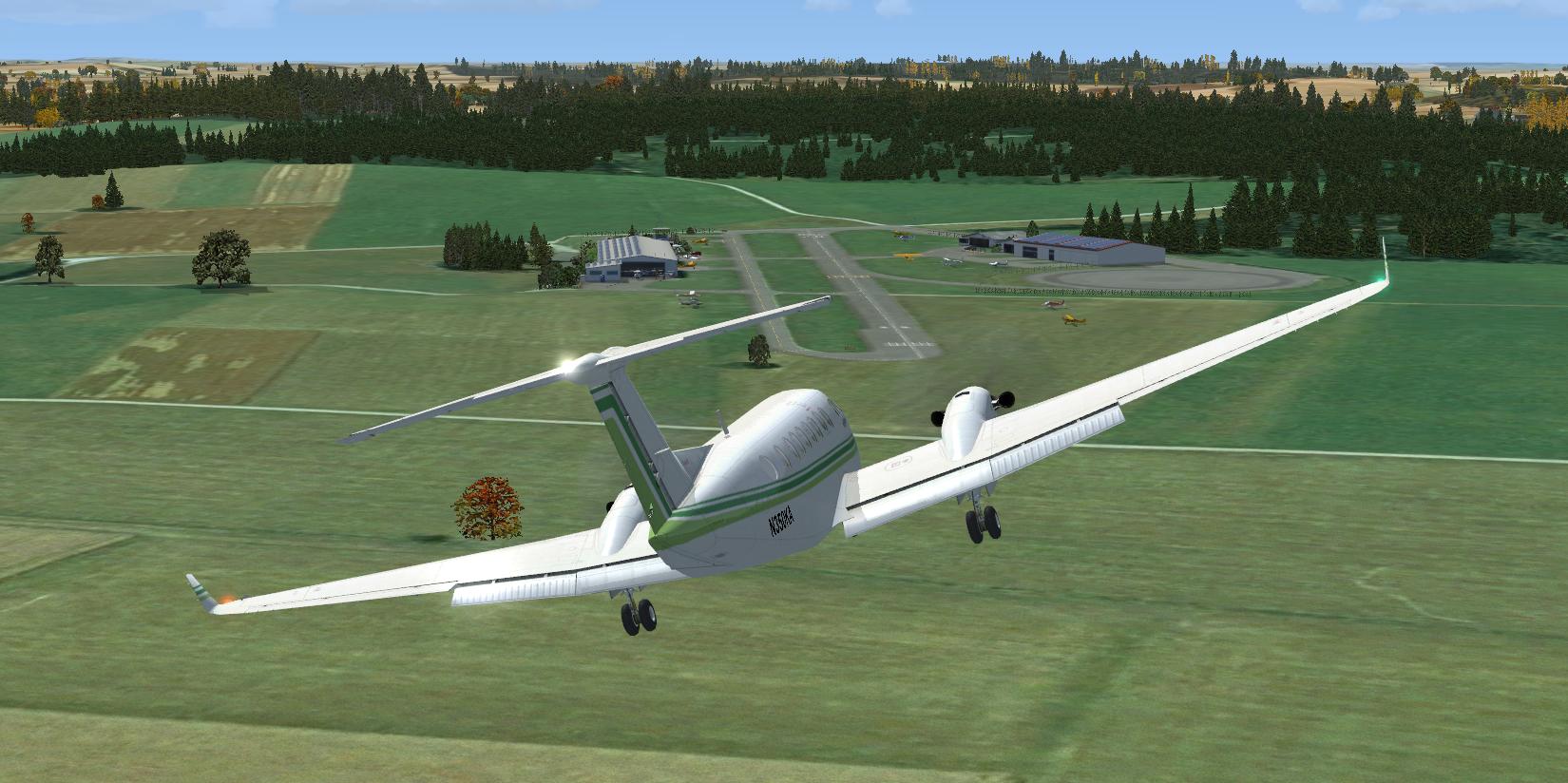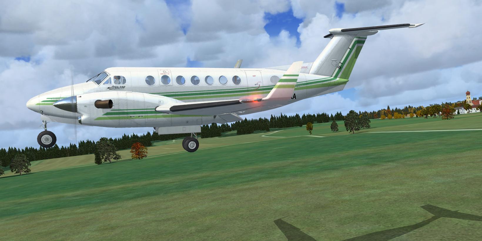 Ein keiner Sportflugplatz lässt grüßen. Mit der King Air 350 wird da richtig eng aber es reicht gerade noch für Start und Landung.