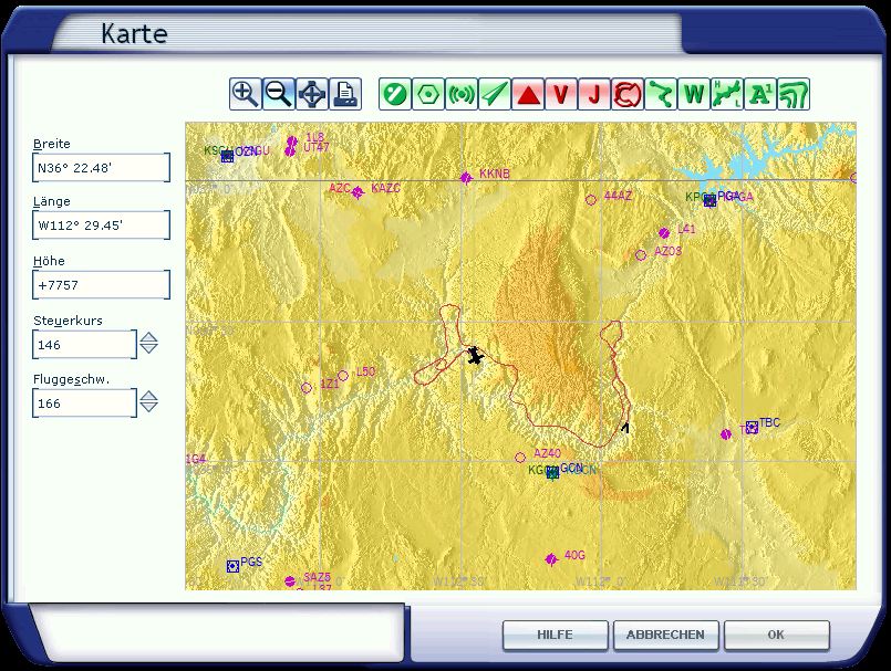 Die Karte zeigt den abgeflogenen Bereich. Das ist ungefähr der Bereich der ausgetauschten Szenerie, die komfortabel durch ein Setup-Programm ausgetauscht wird.