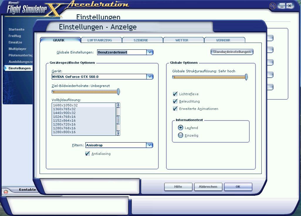Das ist der größte Performance-Killer in FSX und man sieht keinen Unterschied, ob an oder aus.