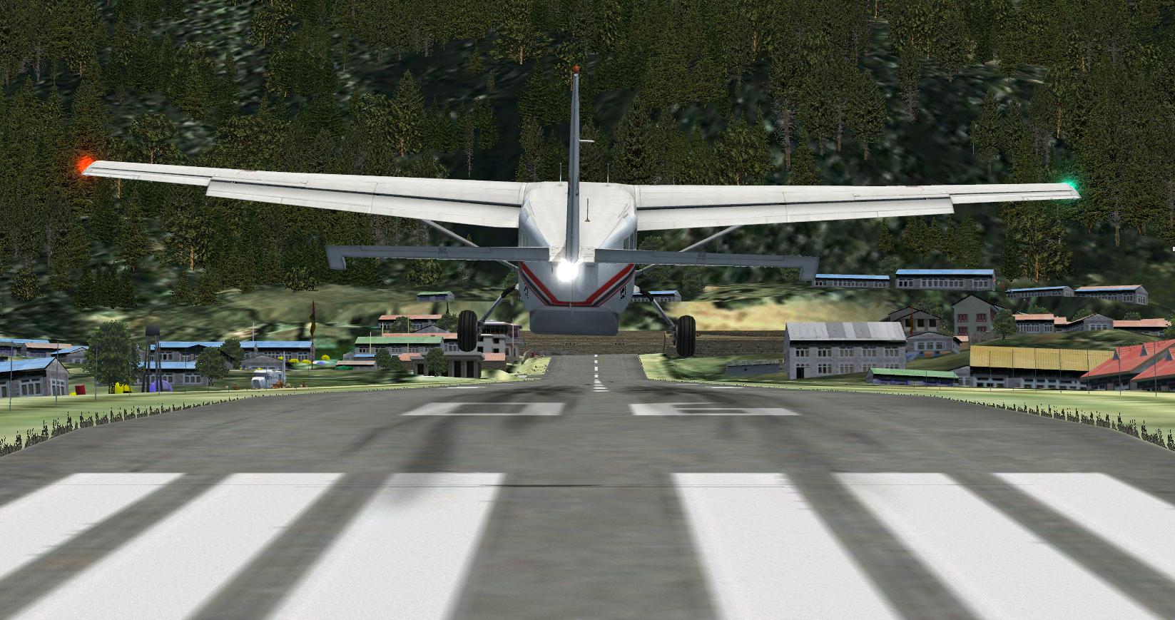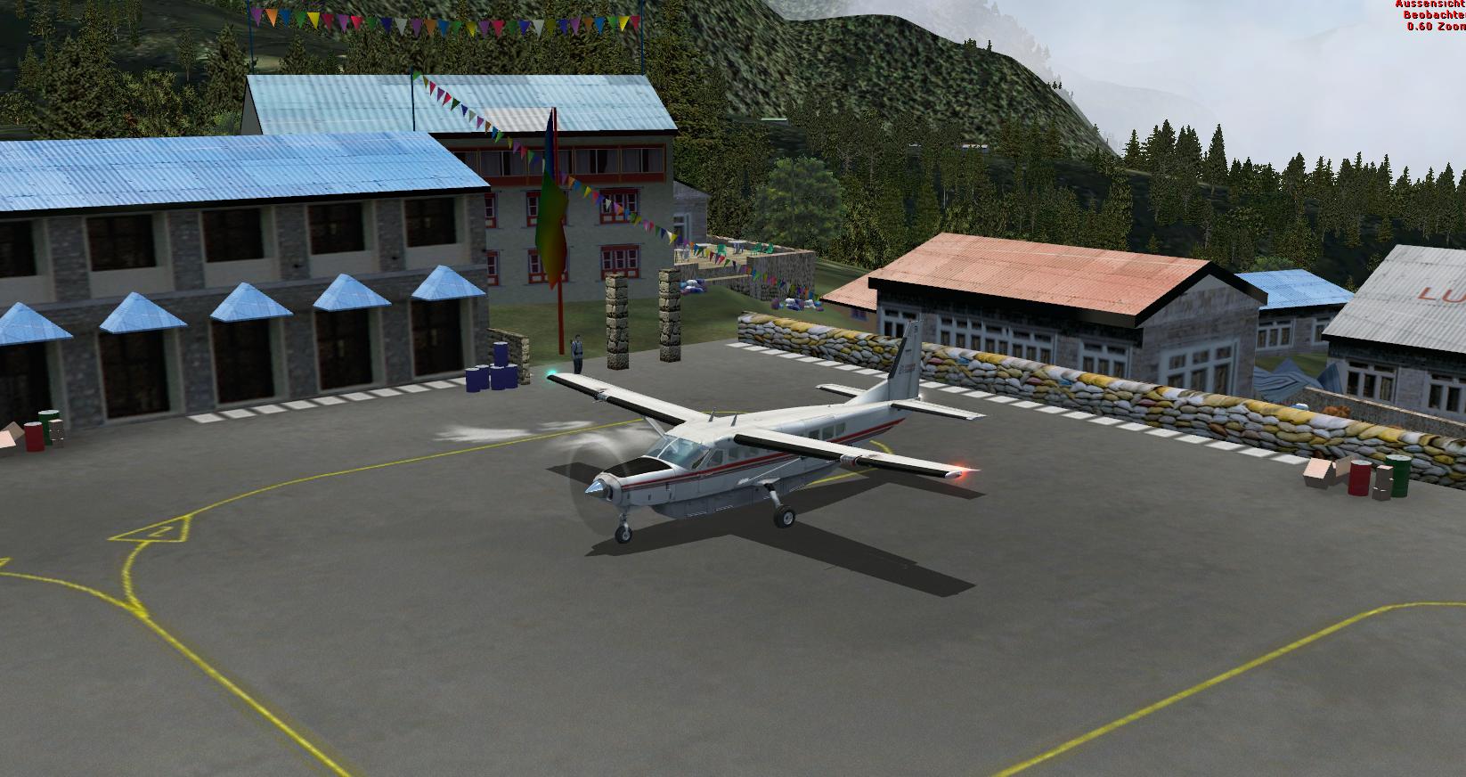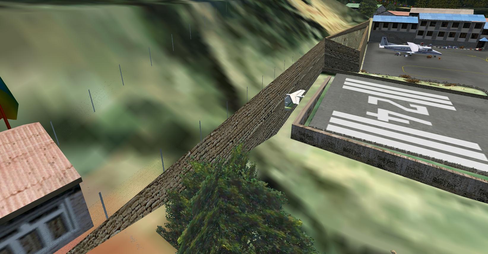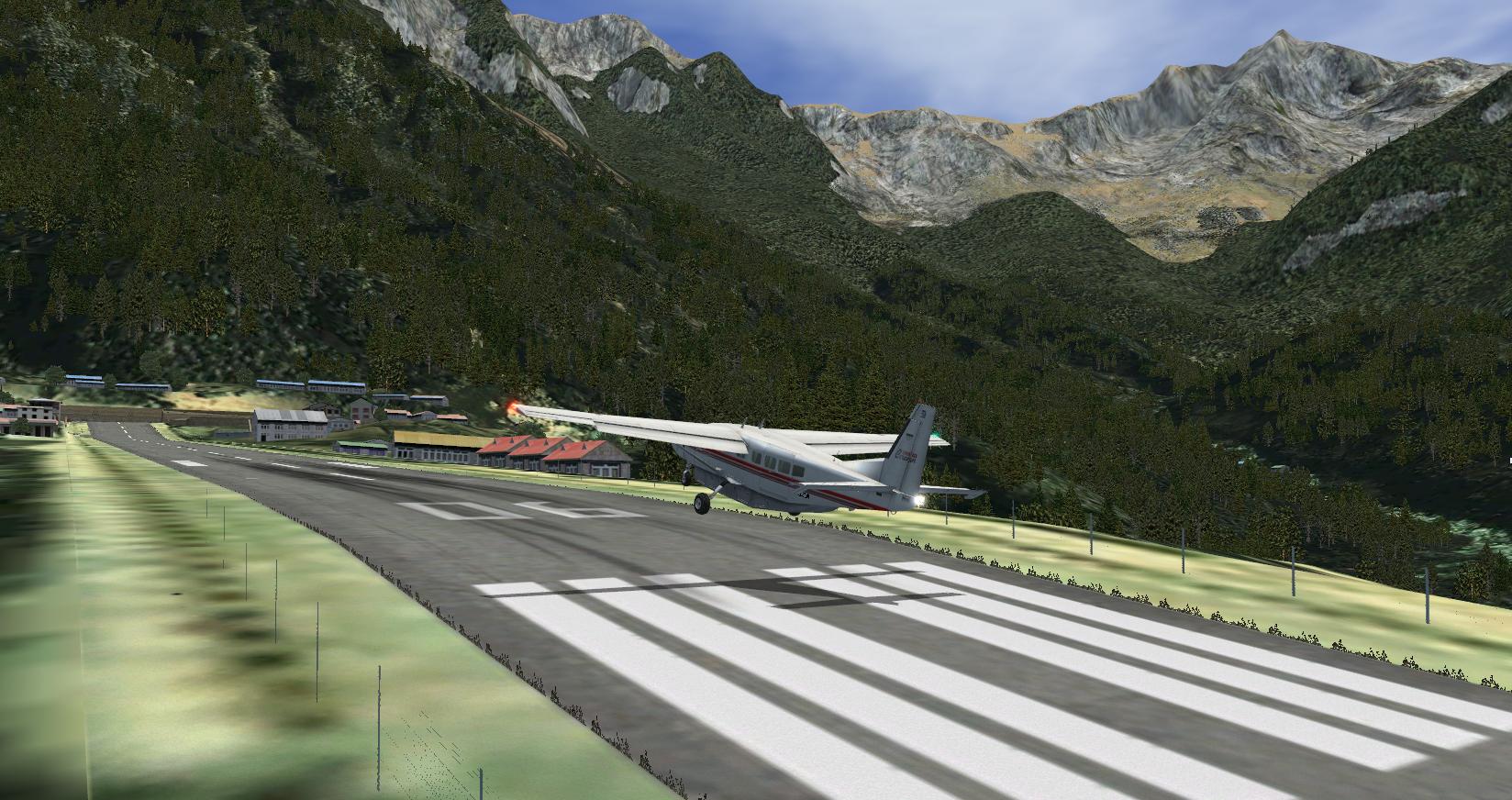 Stimmt! Auf Flugzeugträgern gibt es Haken, wenn man die verfehlt kann man durchstarten! Auf Lukla gibts eine Mauer! Wie schreiben die Add-on´ler bezeichnenderweise: "Reduzieren sie die Last; schmeissen Sie die Secherserpacks und Ihre Schwiegermutter raus! Es ist besser sie zurückzulassen, als sie über die letzten paar Meter der Landebahn zu verteilen."