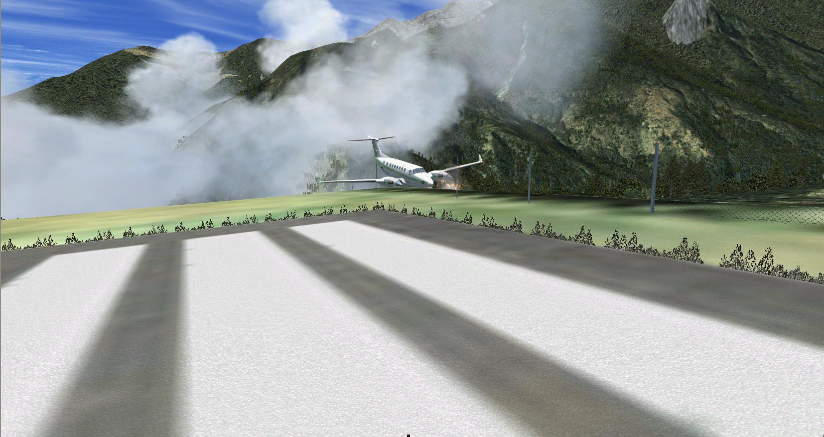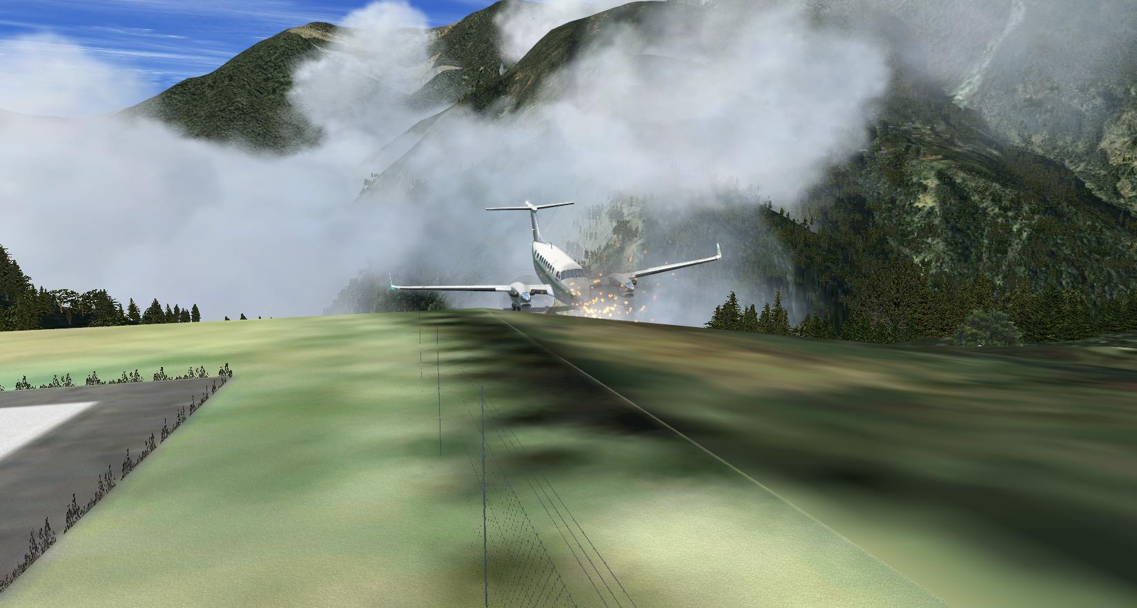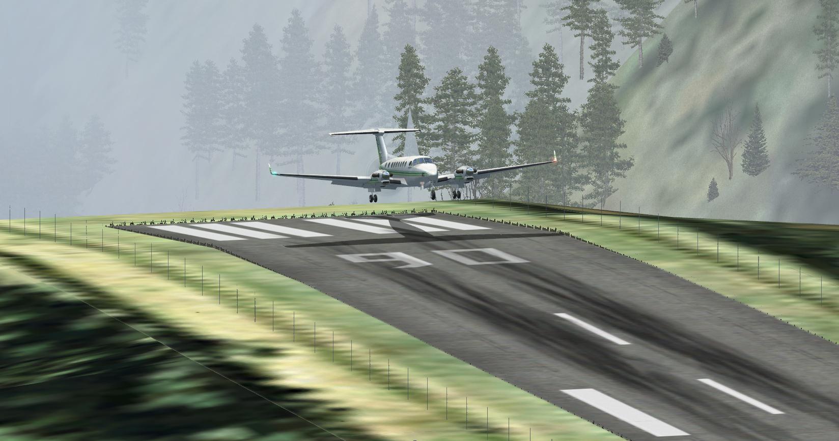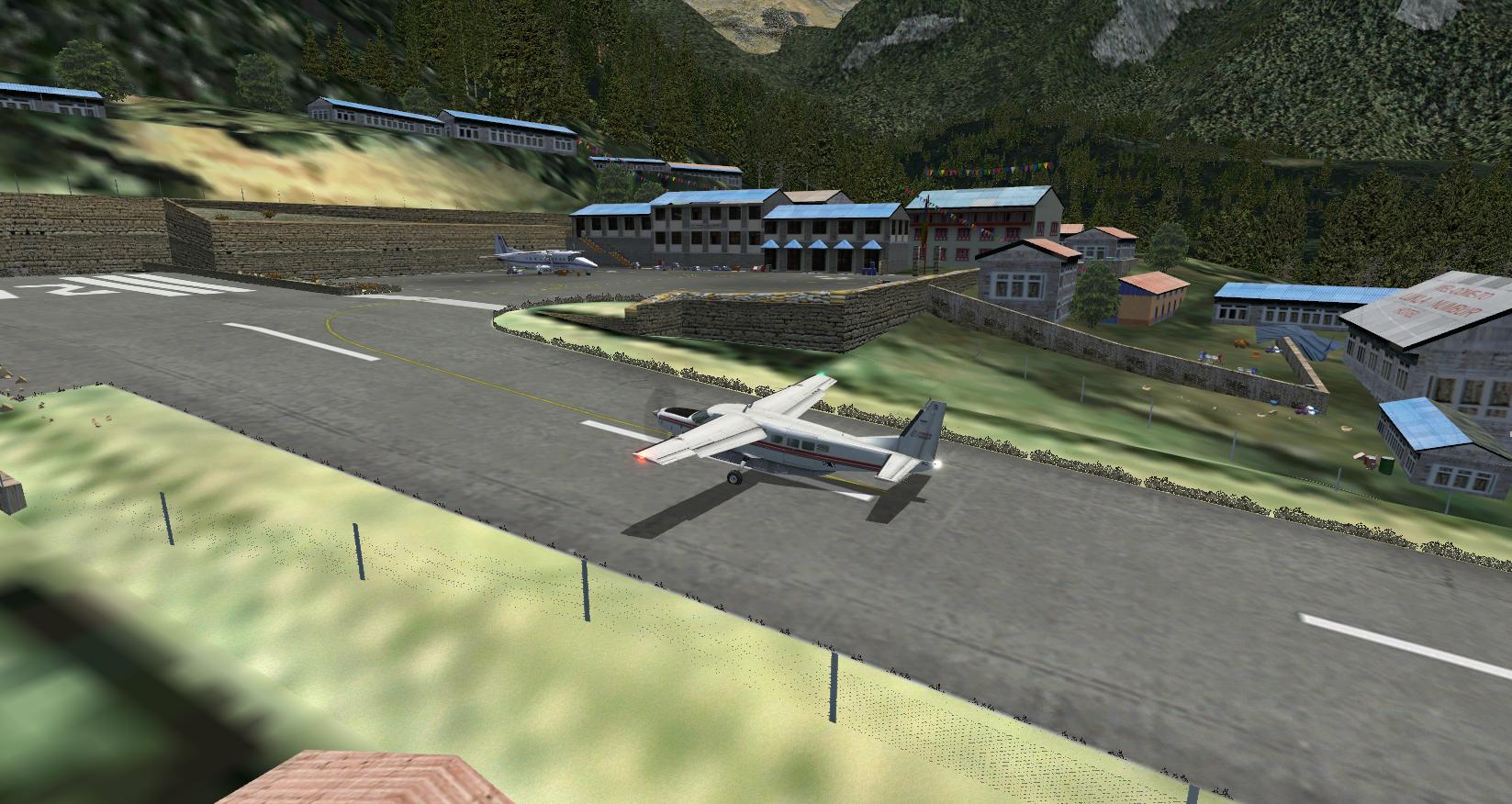 Stimmt! Auf Flugzeugträgern gibt es Haken, wenn man die verfehlt kann man durchstarten! Auf Lukla gibts eine Mauer! Wie schreiben die Add-on´ler bezeichnenderweise: "Reduzieren sie die Last; schmeissen Sie die Secherserpacks und Ihre Schwiegermutter raus! Es ist besser sie zurückzulassen, als sie über die letzten paar Meter der Landebahn zu verteilen."