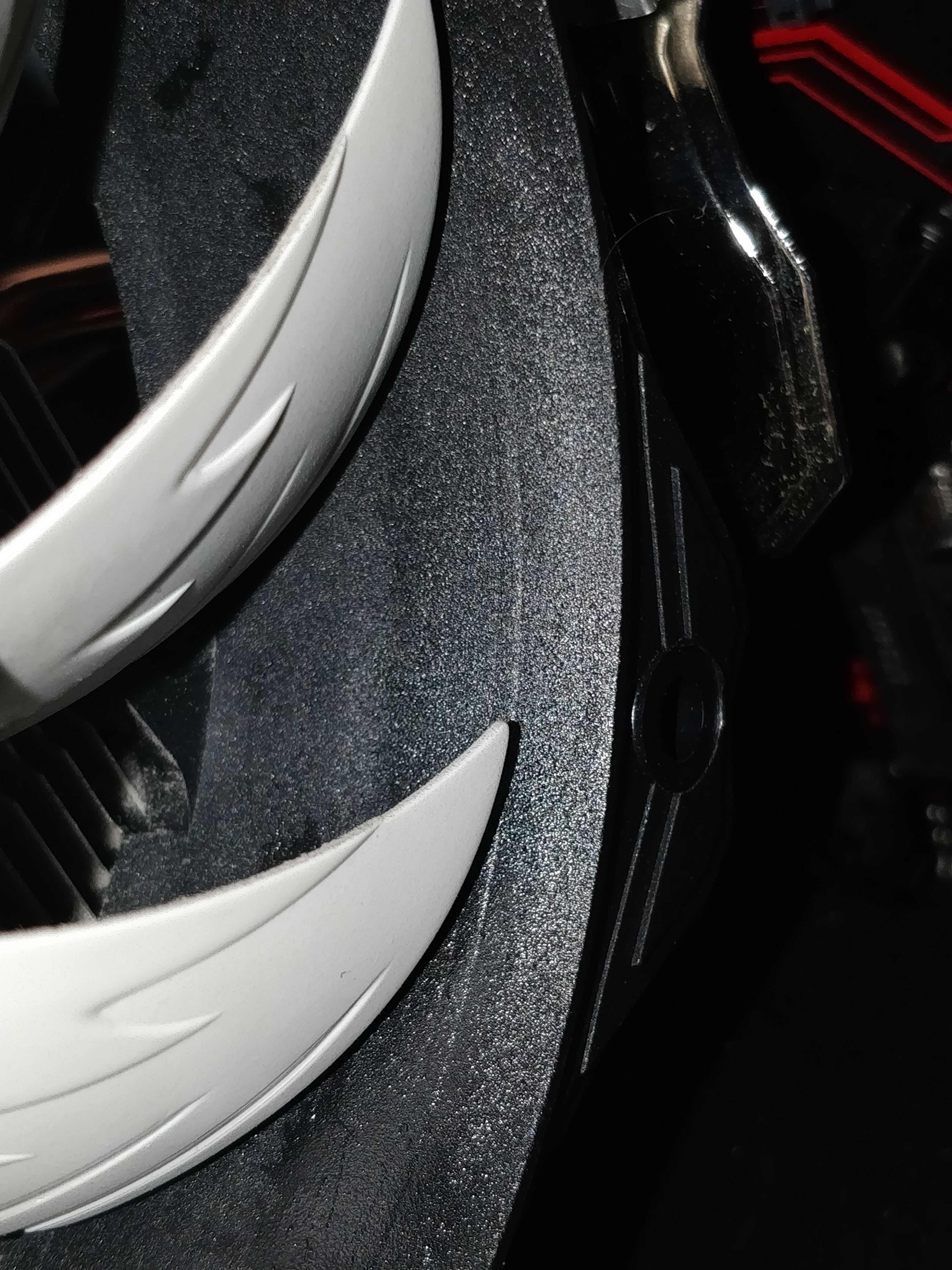 Hinter dem häufig fotografierten Aufkleber an der Vorderseite des Alpenföhn Ben Nevis befindet sich kein Zugang zu einer Ölquelle oder dem Lager des Lüfters. Öl, welches das Lüfterlager verlassen hat, müsste an der Nabe an der Rückseite des Lüfterrades ausgetreten sein, und dann seinen Weg an zu den dokumentierten Stellen gefunden haben.