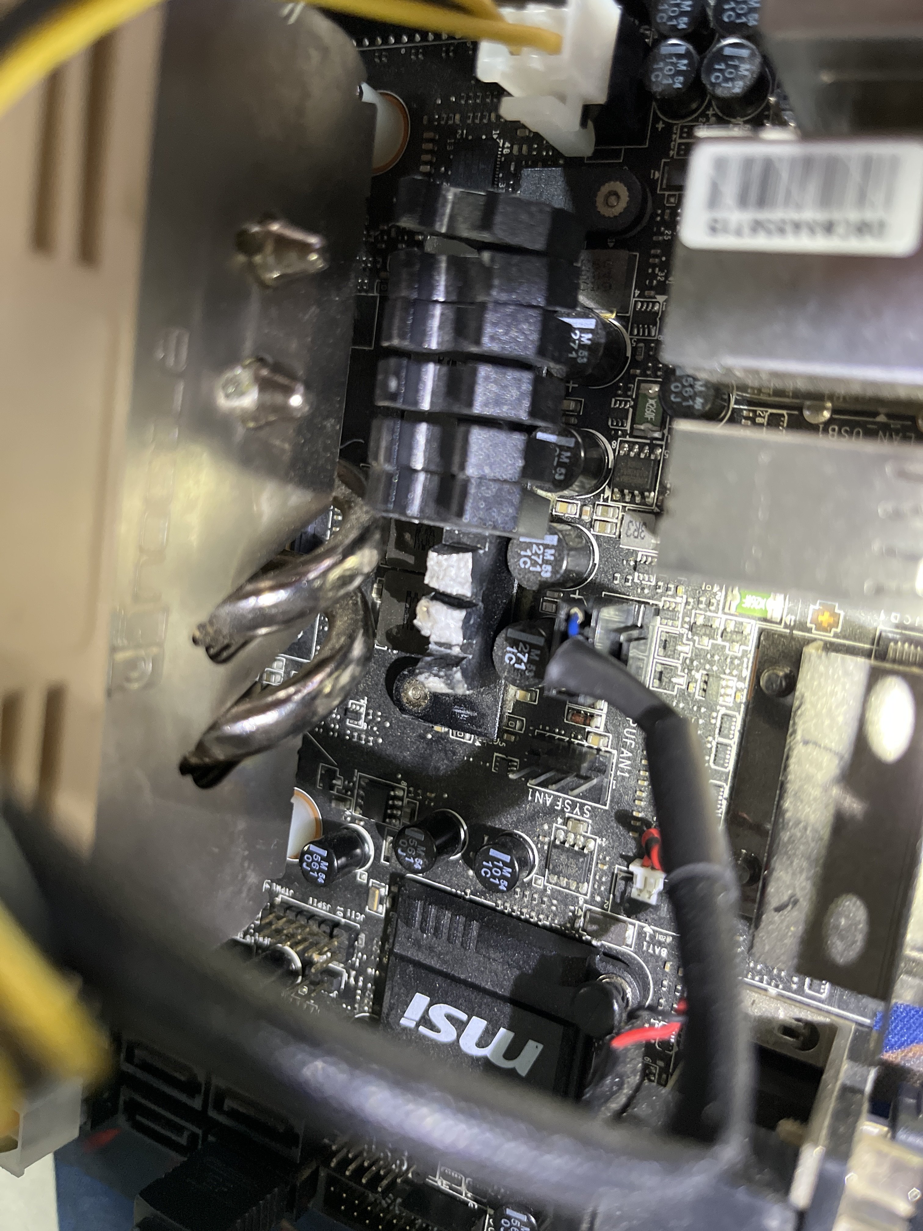 Als nächstes das Board nochmal umgebaut on ein Inwin Chopin mit integriertem Netzteil. Kurz ( ohne Monitor getestet) . Oh wunder Mainboard geht an und bleibt an. Ok komisch dachte ich mir naja mal nen Monitor anschließen um sicher zu gehen, dass das Board auch wirklich bootet. Tat es nicht, der Bildschirm blieb auch nach mehreren Versuchen schwarz. Jetzt nochmal das SFX Netzteil angeschlossen und wieder schien alles so als gäbe es keine Probleme. Der Vorbesitzer versicherte mir, dass er das Netzteil nur zum Lüfter entstauben geöffnet haben soll. Denn das Siegel dort war bereits gebrochen. Daraufhin habe ich eas Ding vorhin geöffnet aber nichts auffälliges sehen können.