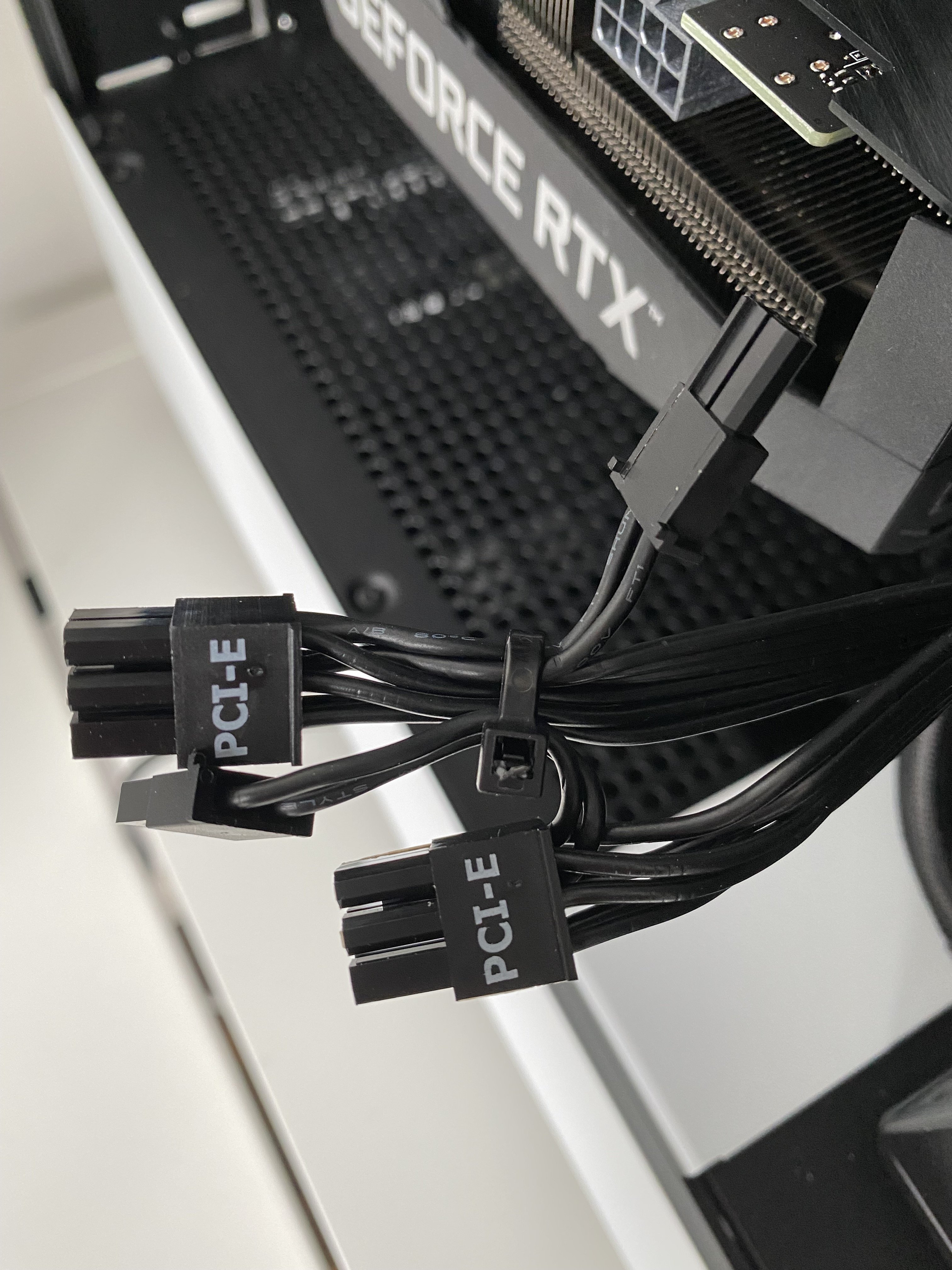 Laut Manual und einigen Aussagen, soll man diesen "Pigtail" nicht nutzen und somit habe ich jetzt zwei dieser Kabel genutzt und ein mal den 8 und am anderen Kabel den 2 Pin an der GraKa genutzt.