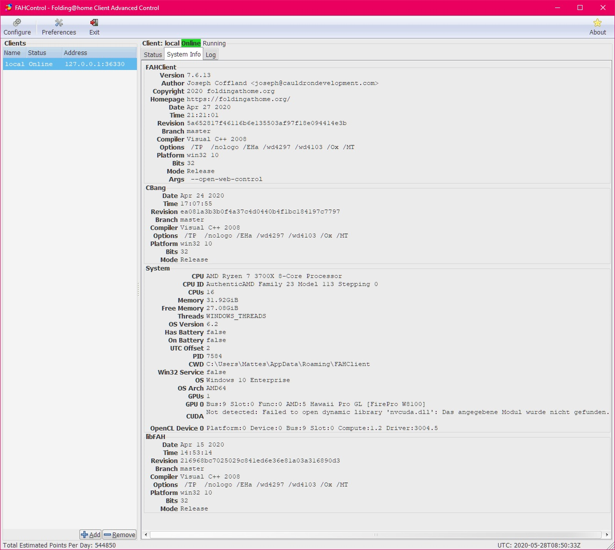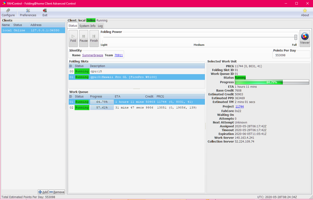 Also F@H Client installiert und auch sofort WUs zugeteilt bekommen.