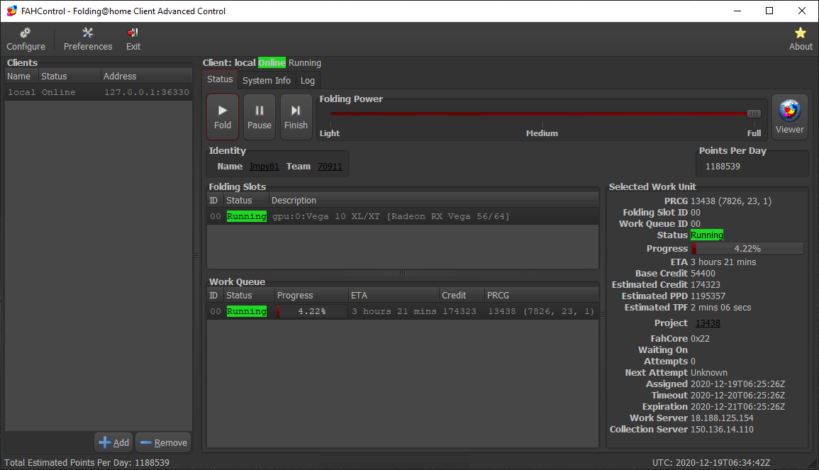 Hatte Gestern Langeweile und hab mal wieder den Laptop laufen lassen. Bei einem Systemverbrauch (!) von etwas über 110W macht der laut FaHControl 1,38Mio Punkte am Tag. Die 24h sind rum und ja - schafft er tatsächlich.