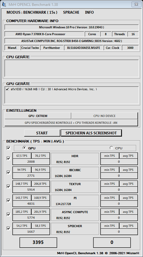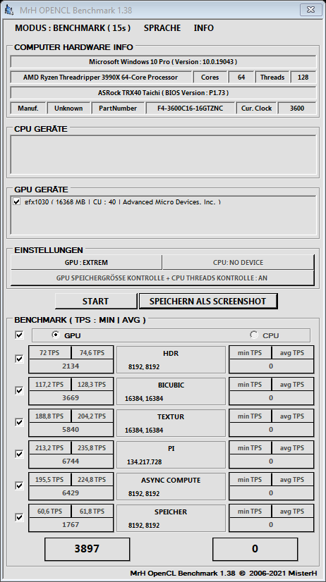 Hab nur ne 6800, die sollte ja 25% weniger machen als die 6900xt bei gleichem Takt (bzw. die 6900 30% mehr). Passt nicht so ganz im Verhältnis, außer bei PI. Hab 2200 Mhz für den Benchmark eingestellt bei 975mv. Allerdings werden vom Tool die CUs auch falsch ausgelesen.