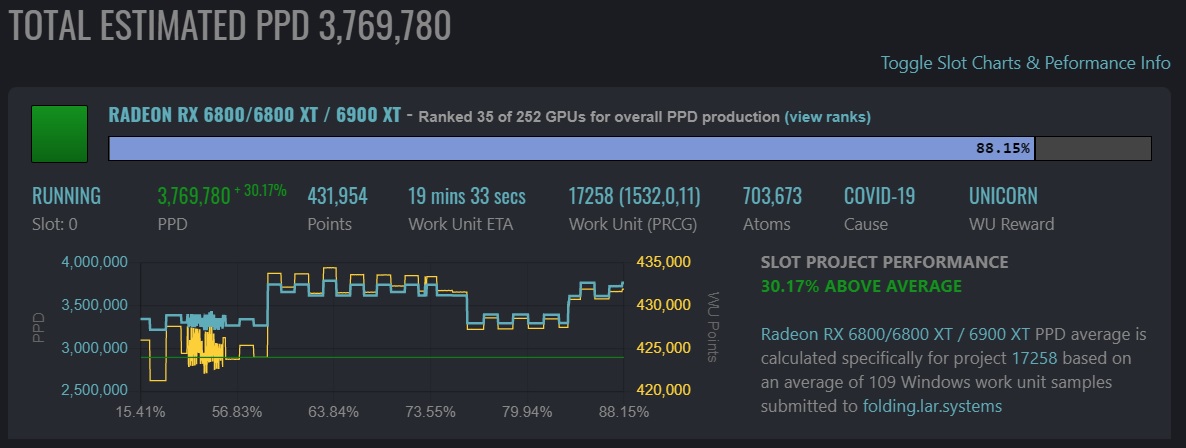 Dann kannste ja mit der 6900 die 1080&Titan rauswerfen, verbrauchst weniger und machst mehr PPD. Win/win :-)