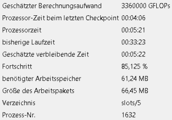 In jedem Falle ist es überprüfenswert, ob der Fortschritt in der Berechnung der Workunit stattfindet, im üblichen Maße, abhängig (a) von der Rechenbesonderheit des Projekts und (b) der üblichen Rechengeschwindigkeit der GPU nach Takt, Treiberversion und Betriebssystem. Solche Werte finden sich überall im Internet, siehe PPD.