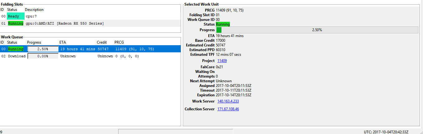 Hi, Gibt es eigentlich schon erfolge beim Falten, bzw kann man herrausfinden, wie lange es noch dauern wird, bis das Projekt abgeschlossen ist? Desweiteren wird meine GTX 1060 nur zu 20% ausgelastet, woran liegt das?