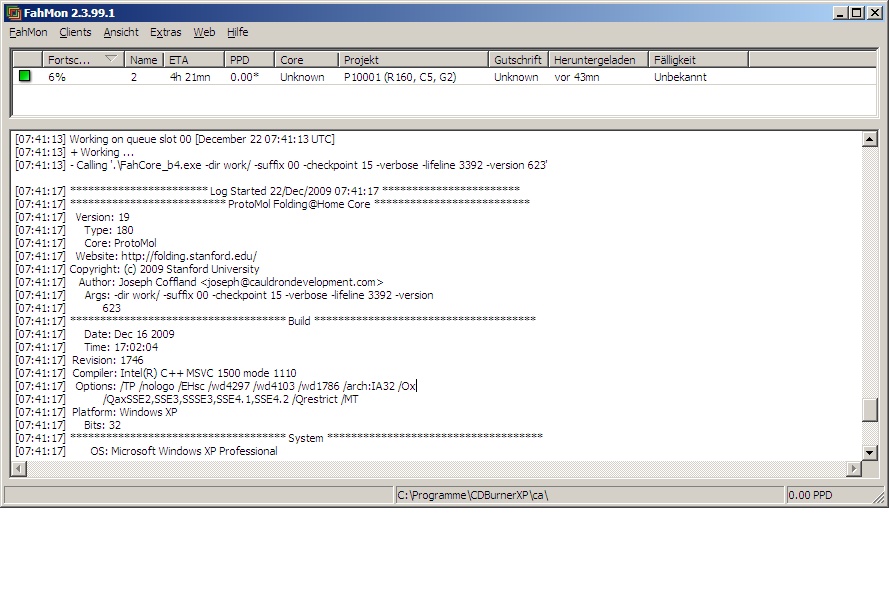Du must den Client Drop-in binary for current Windows SMP console client (6.24). Expires: July 4, 2010 http://folding.stanford.edu/English/DownloadWinOther