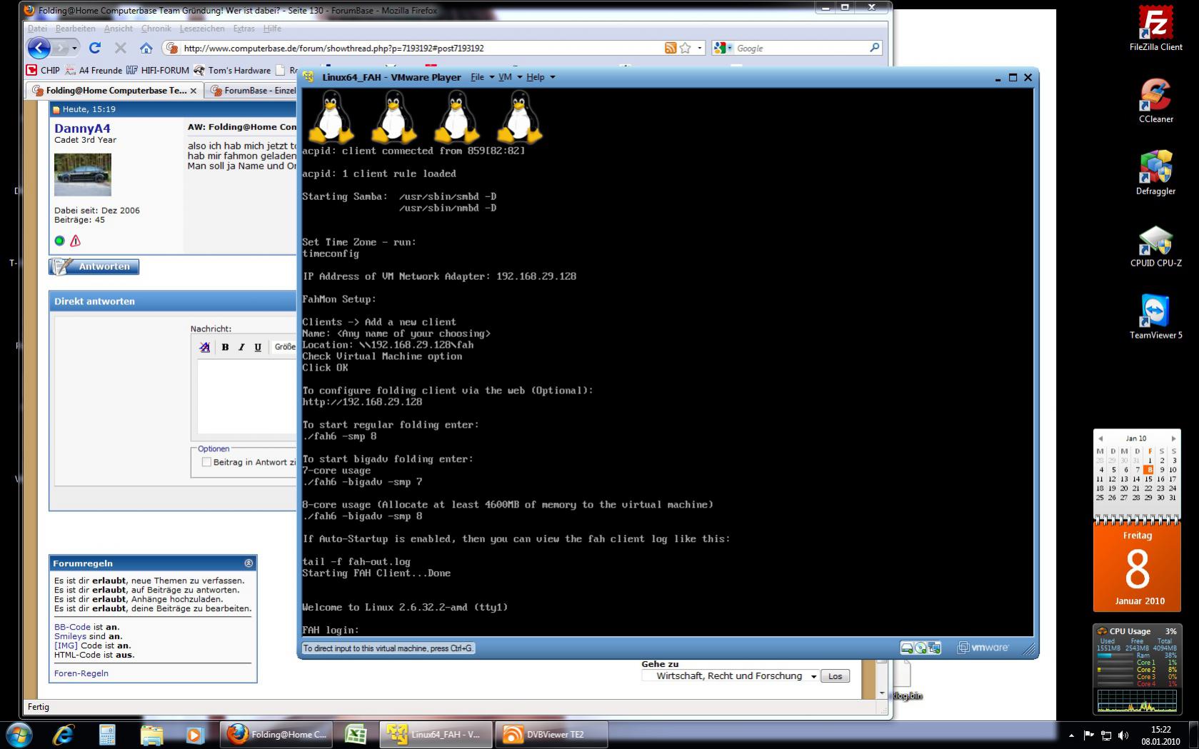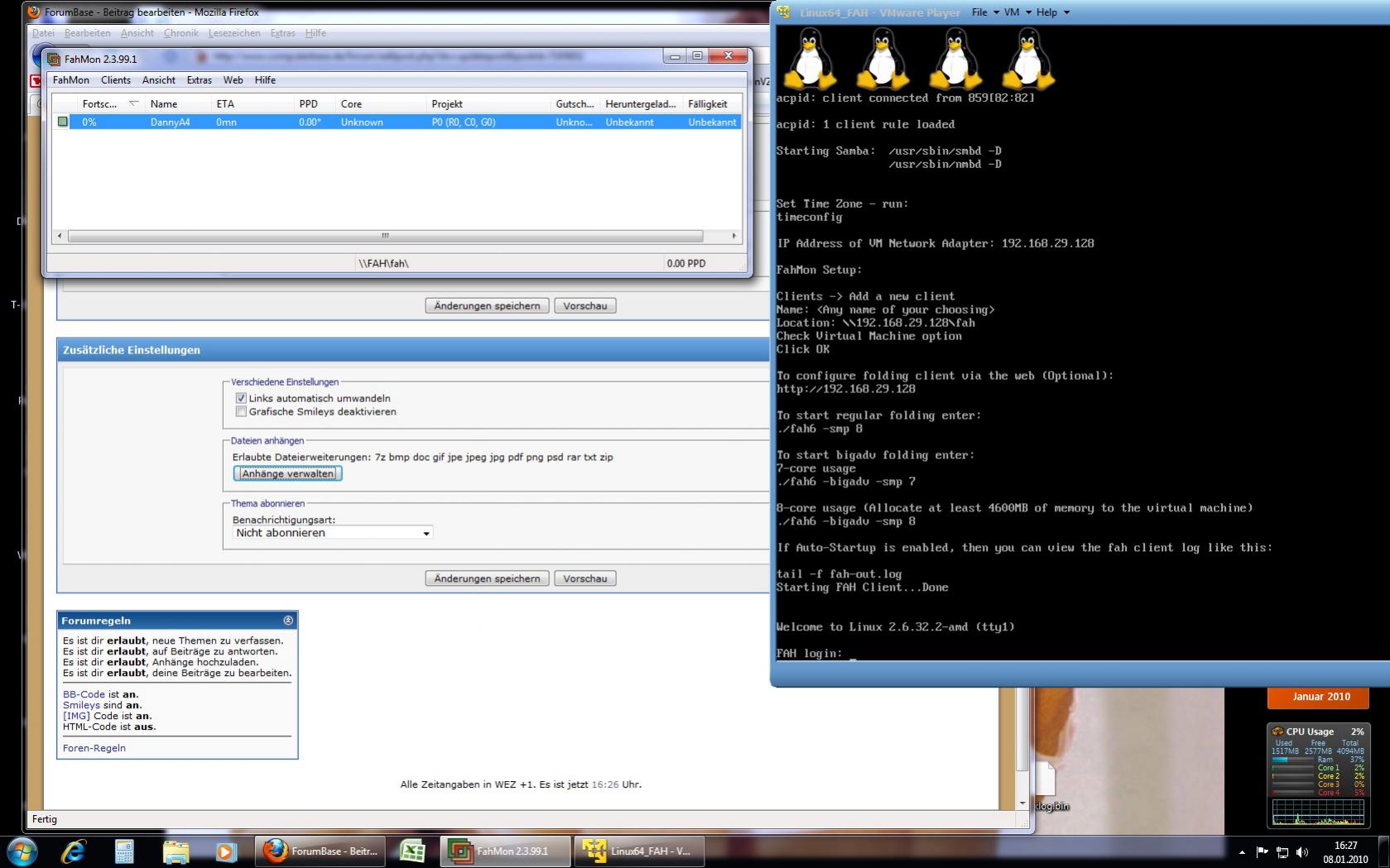 ok, VM Player ist installiert und gestartet, jetzt lädt er sich "VMWare Tools for Linux" runter...hmm..na mal abwarten