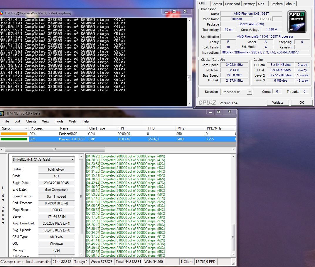 Mal ein Update meinerseits. Der andere rechner ist wieder Online, und mein Server hat eine 9800GT bekommen. Mal sehen ob ich in 24h 6000 punkte schaffe.