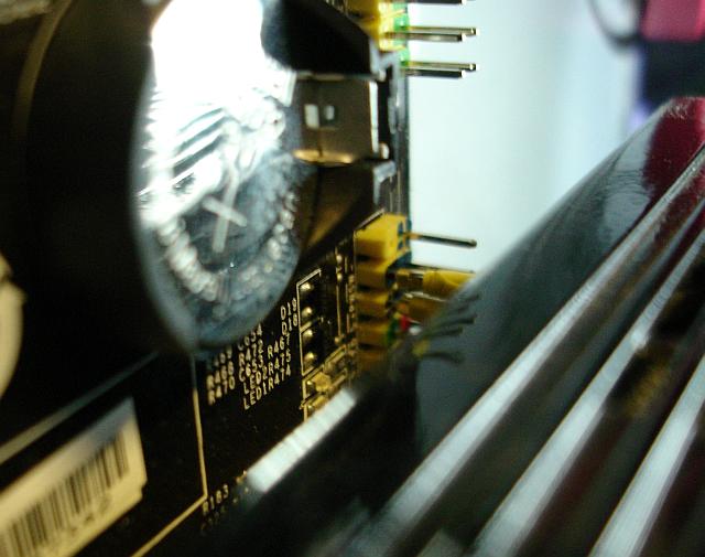 Die dritte Grafikkarte wird ein ungeahntes Problem: die Karten überragen das Board um fast 2 Zentimeter, der dritte und letztePCIe-Slot (hatte ich nie zuvor genutzt) liegt auf Höhe des Einschalt-PINs, würde folglich abgedeckt und unzugänglich, auf die Anzeige-PINs für´s Gehäuse kann ich verzichten, überlege mir nur wie ich den Rechner dann einschalte ... der PIN liegt leider innen
