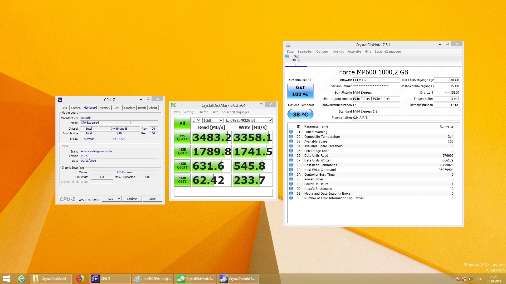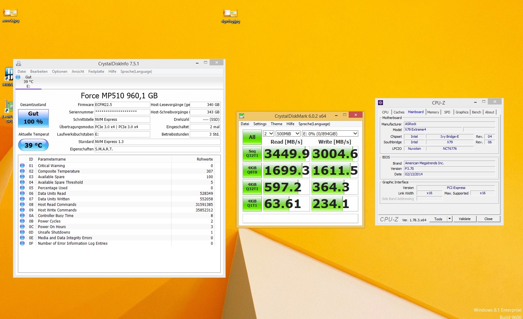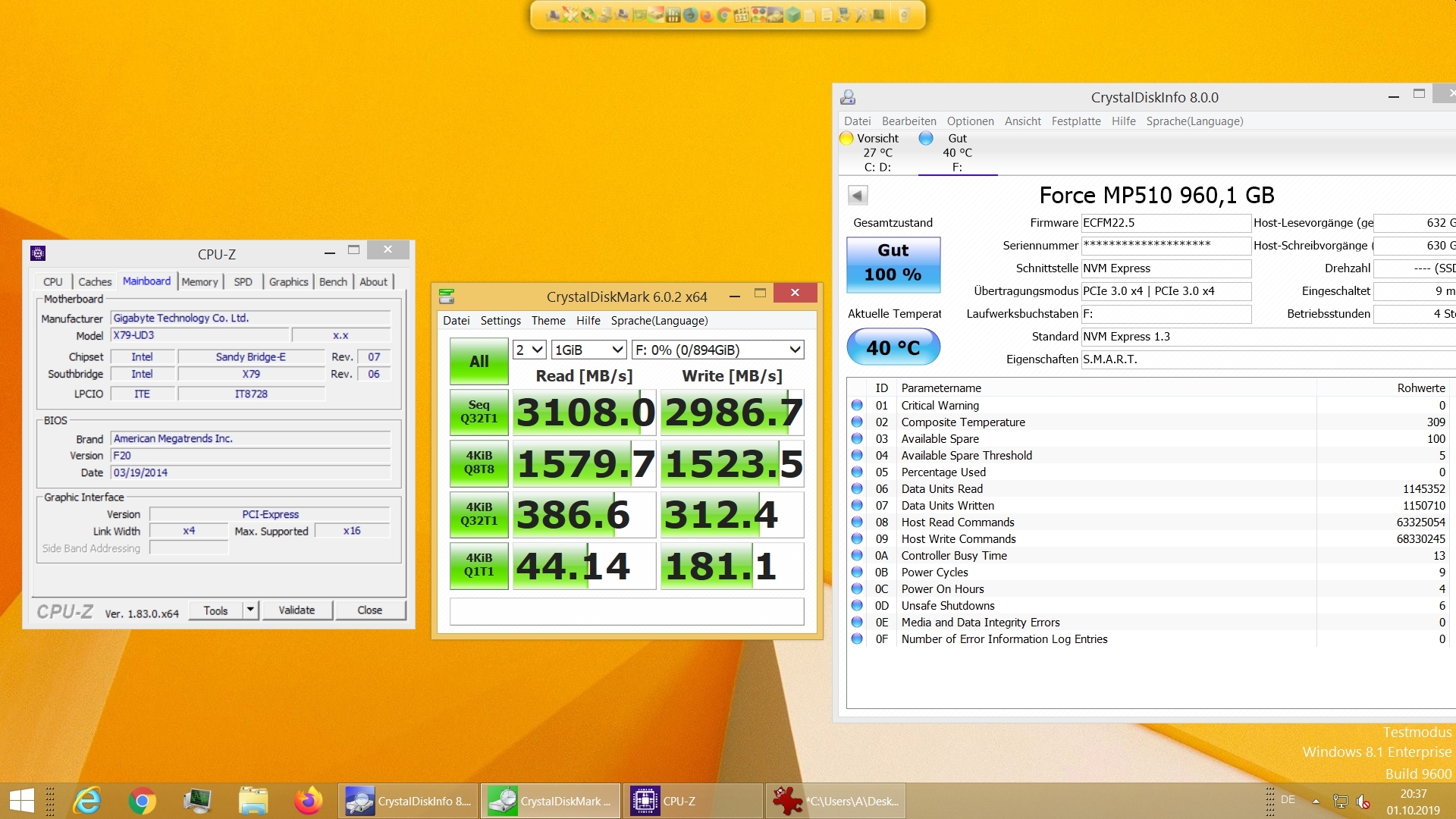 2x X79 Windows 8.1 (Windows auf NVMe installiert C:\) (Achtung um von diesem Chipset eine NVMe zu booten bedarf es einer modifizierung.)