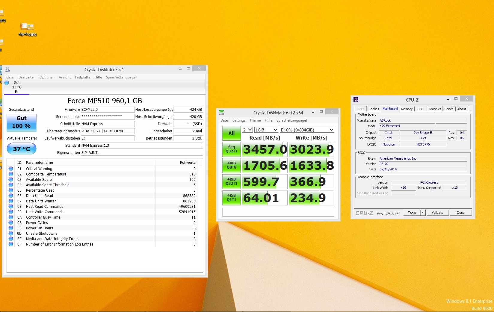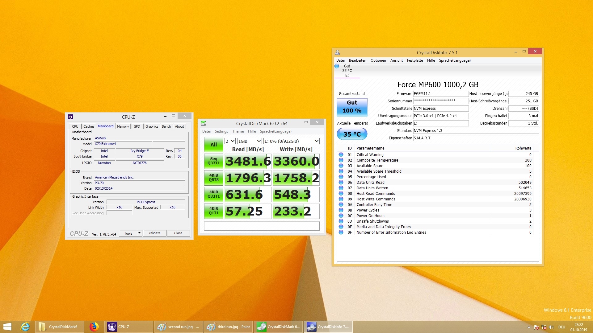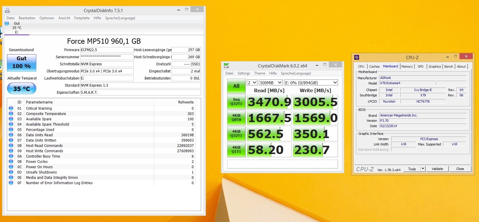 2x X79 Windows 8.1 (Windows auf NVMe installiert C:\) (Achtung um von diesem Chipset eine NVMe zu booten bedarf es einer modifizierung.)