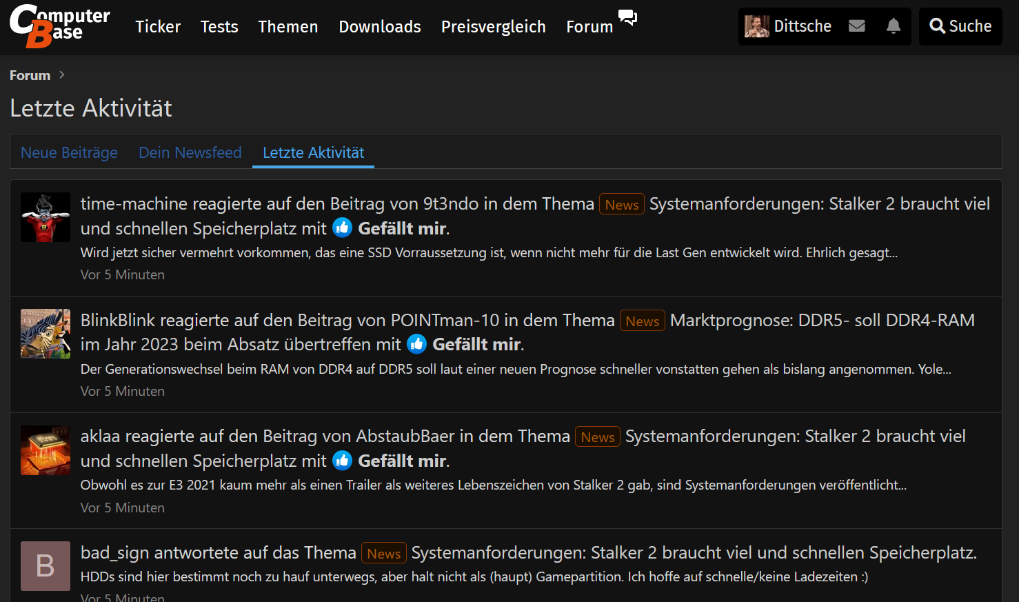 Forenaktivität eines anderen Nutzers sichtbar in Account