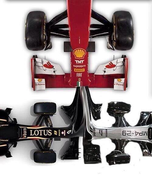 Beim McLaren ist mir als erstes gar nicht die Nase, sondern die riesigen Kühlöffnungen ins Auge gestoßen. Man kann auch schön sehen, dass sie wieder zu Pushrod vorne gewechselt haben.