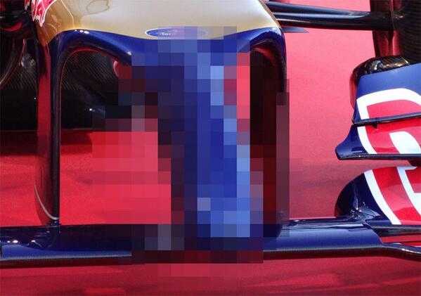 Neuer Sauber. Sieht bisher noch am besten von allen aus. Ansonsten schwer was zu erkennen. Die Streben am Heckflügel sind glaub ich ähnlich um den Auspuff gebogen wie beim Ferrari. Auch die Sietenkästen wirken eher schmal wie beim Ferrari. Überrollbügel schließt bündig mit der dreieckigen Airbox ab.